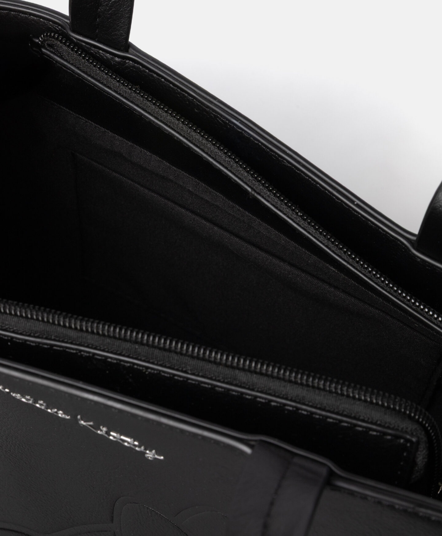 Rätiga kaunistatud must käekott on elegantne aksessuaar, mis mõjub ühtaegu klassikaliselt ja moodsalt. Vastupidavatest materjalidest kott sobib iga riietuse juurde. Pilkupüüdev rätt lisab kotile omapära.
