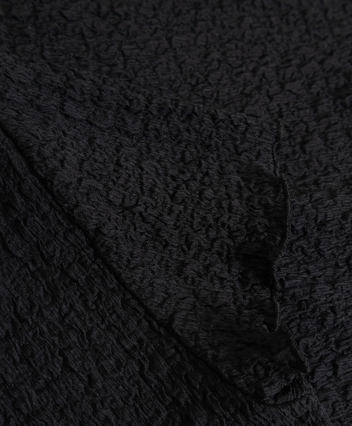 Must laste T-särk struktureeritud kootud kangast on stiilne valik igapäevaseks kandmiseks. Lühikeste varrukatega sobib see ideaalselt kihiliseks kandmiseks ja soojematel päevadel saab seda kanda komplekti tähena. Uskumatult mitmekülgne, see sobib hästi nii teksade, dressipükste kui ka seelikuga. Saadaval on ka kokku sobivad püksid.