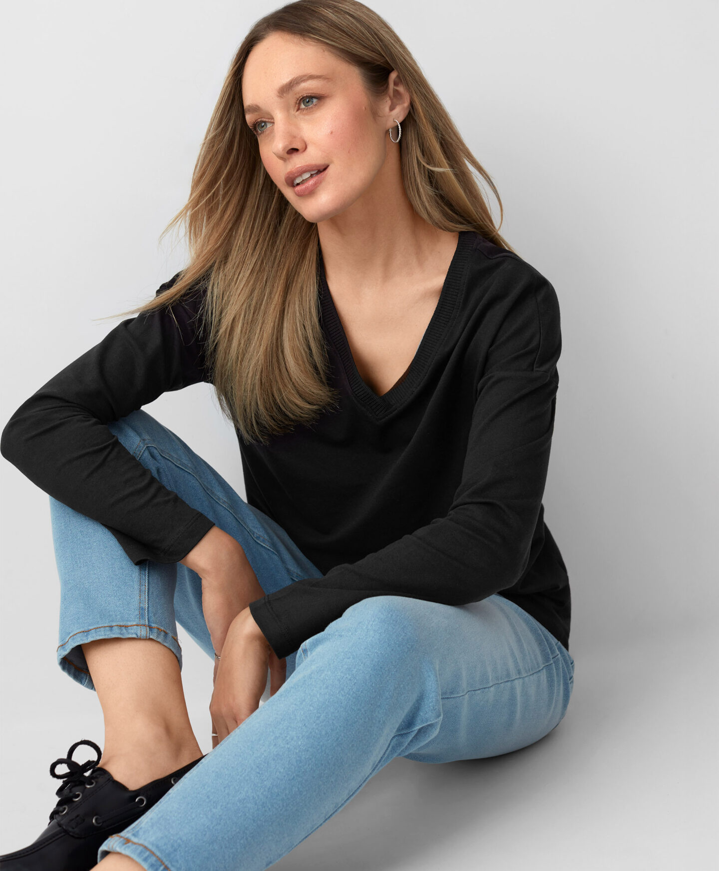 Suure puuvillasisaldusega must T-särk võrdub mugavuse ja stiiliga. Selle universaalne lõige sobib nii elegantse kui ka argise riietuse juurde.
