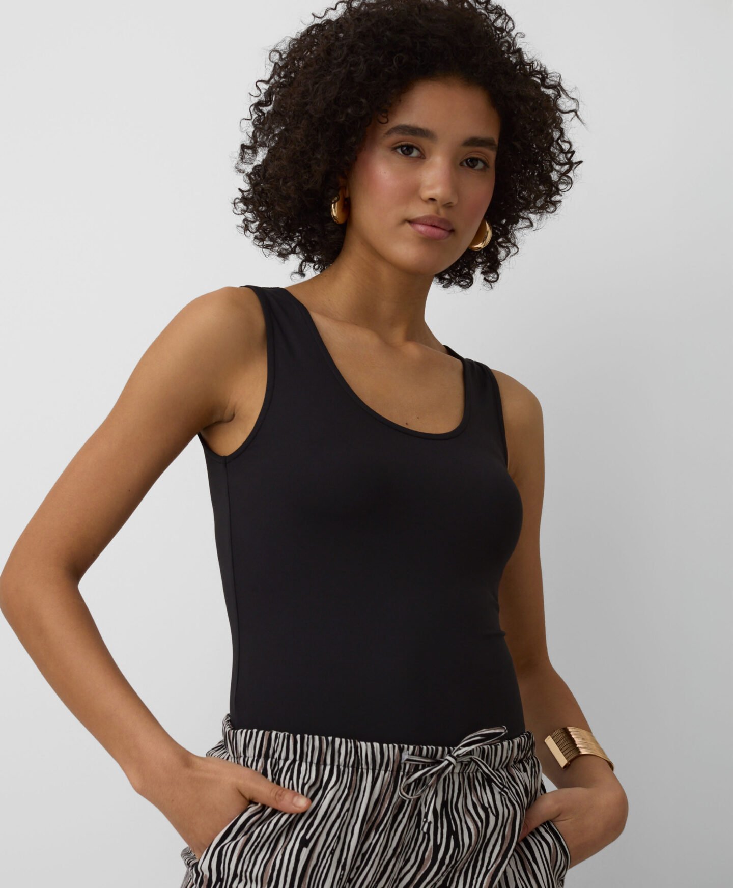 See must topp on uskumatult mitmekülgne. Sobib hästi teksade, chinode, lühikeste pükste ja sportpükstega. Saab kanda nii jaki kui ka dressipluusi all. Pehme tekstuur ja ühtlane värv muudavad selle topi iga eduka riietuse aluseks. Saadaval kolmes värvitoonis.