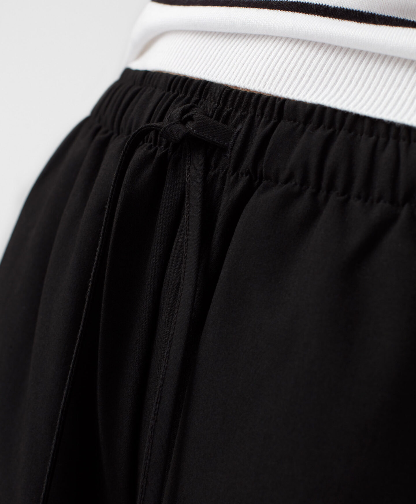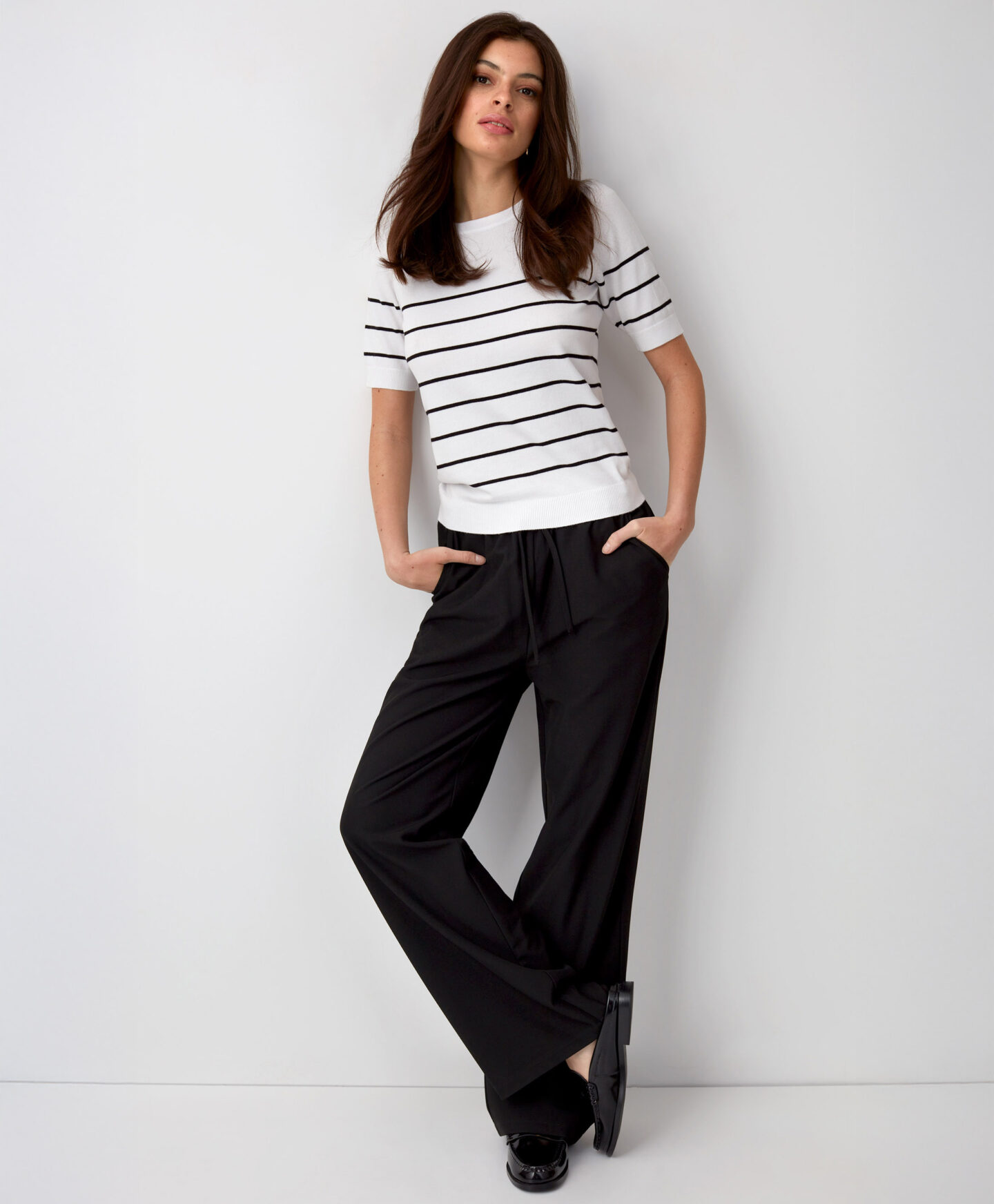 Mitmekülgsed mustad püksid on elegantne valik riidekapi täiendamiseks. Need on seljas väga mugavad ja langevad meelitavalt ümber keha. Minimalistliku disainiga pükse on lihtne sobitada nii argisema kui ka pidulikuma riietusega. Vali need jalga näiteks tööle või õhtul välja minnes.