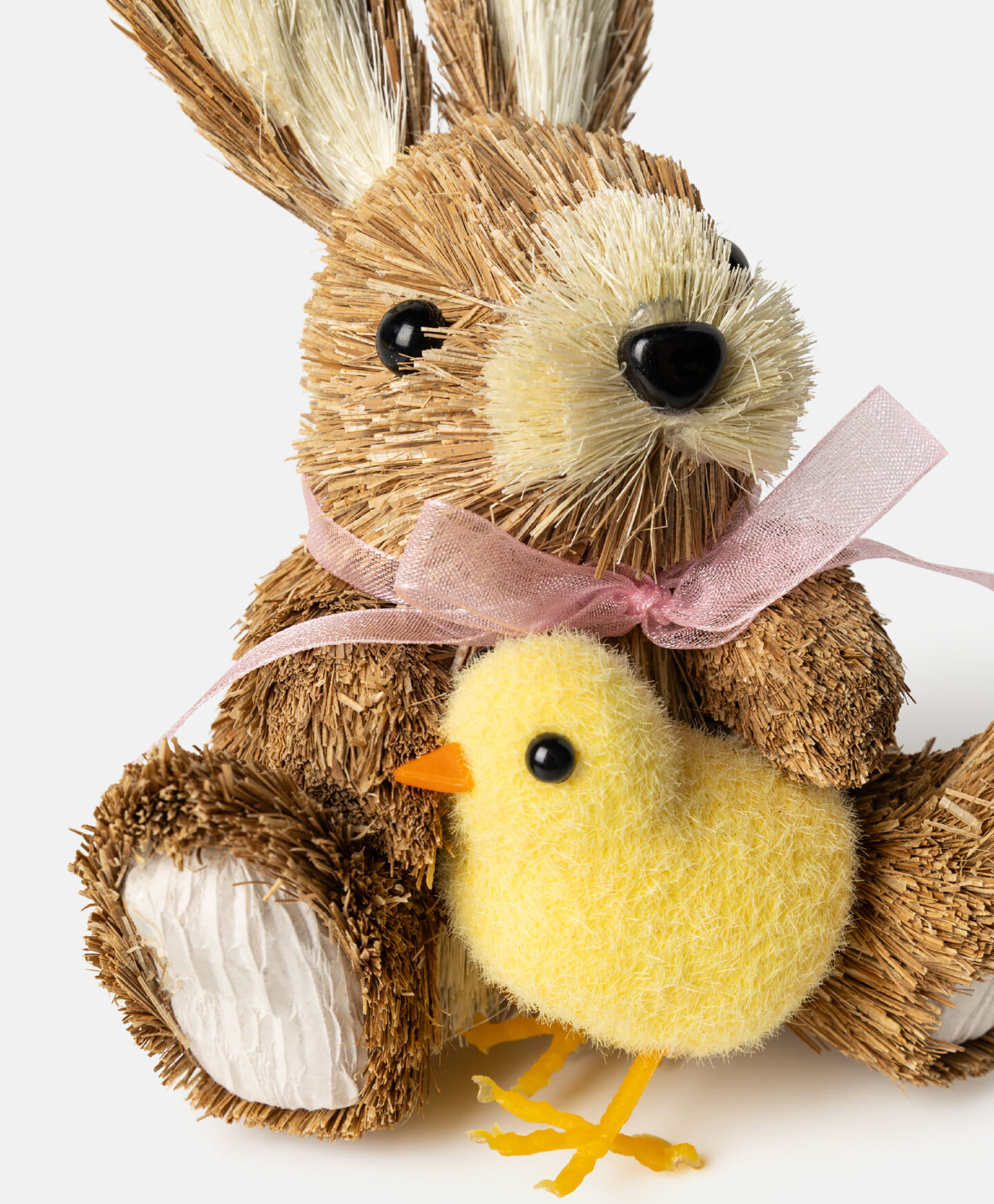 Õlgjänes tibuga on võluv kaunistus, mis on osaliselt valmistatud looduslikest materjalidest ja sobib suurepäraselt nii maalähedasse kui ka moodsasse interjööri. Jänes on kerge, vastupidav ning täiesti ohutu lastele ja lemmikloomadele. See on ka armas kingitus kõigile, kellele meeldivad lihavõtteteemalised kaunistused.