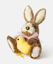 Õlgjänes tibuga on võluv kaunistus, mis on osaliselt valmistatud looduslikest materjalidest ja sobib suurepäraselt nii maalähedasse kui ka moodsasse interjööri. Jänes on kerge, vastupidav ning täiesti ohutu lastele ja lemmikloomadele. See on ka armas kingitus kõigile, kellele meeldivad lihavõtteteemalised kaunistused.