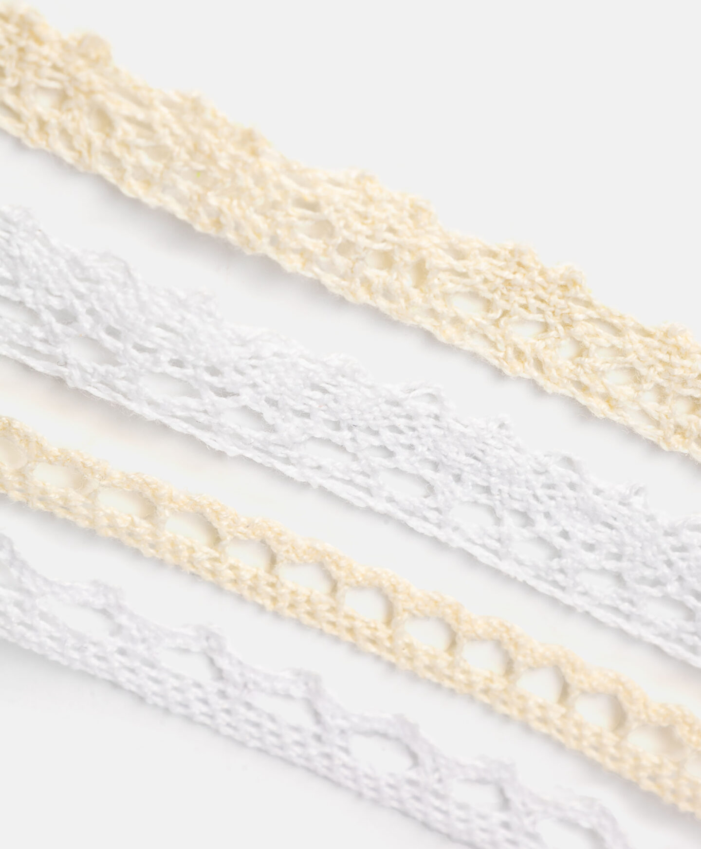 See käsitöökomplekt koosneb 4 meetrist erinevates mustrites pitsist. See sobib ideaalselt neile, kellele meeldivad käsitööprojektid, looming ja isikupärastatud koduaksessuaarid. Ideaalne kingituste kaunistamiseks, pärgade valmistamiseks, kimpude pakkimiseks, laudade kaunistamiseks ja muudeks projektideks – ainsaks piiriks on kujutlusvõime!
