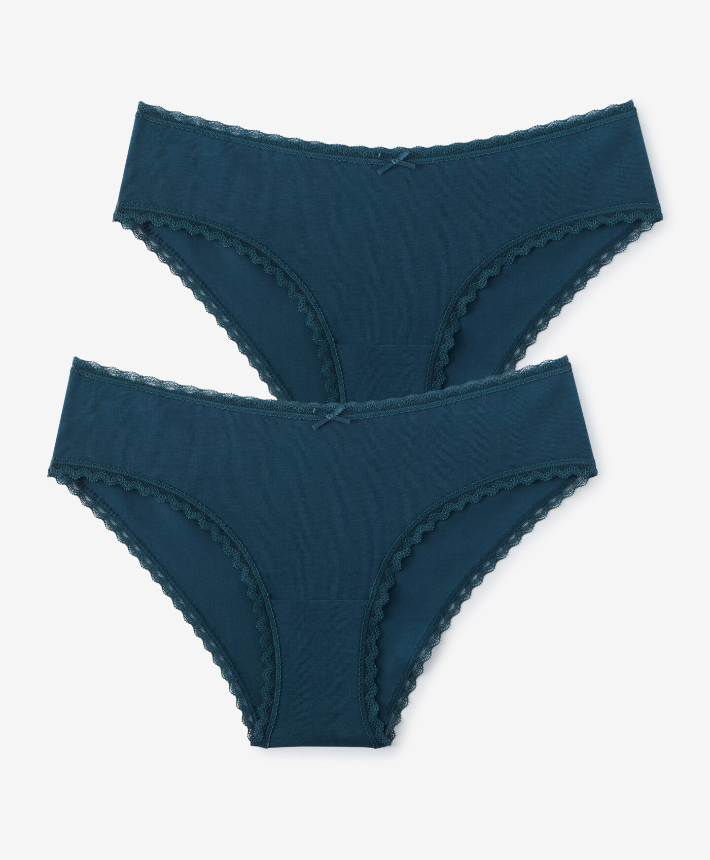 Pitsilise äärega siledast kangast aluspüksid, pakis 2 tk