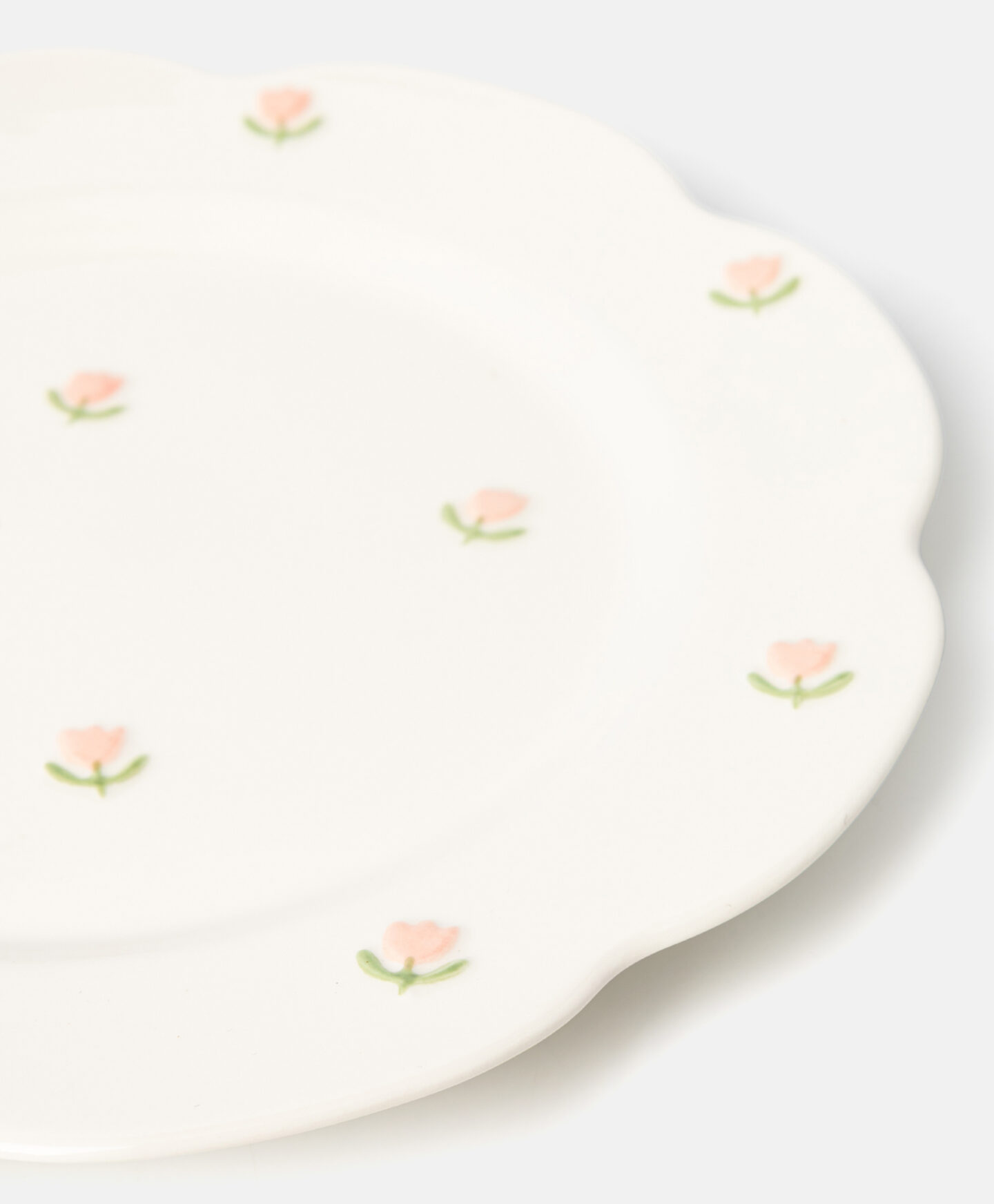 Portselantaldrikul on kaunis lillemuster. Dekoratiivsed, ebakorrapärase kujuga ääred lisavad võlu. Vastupidavast portselanist valmistatud taldrik sobib ideaalselt hommikusöögiks nautimiseks või pidulikuks õhtusöögiks.