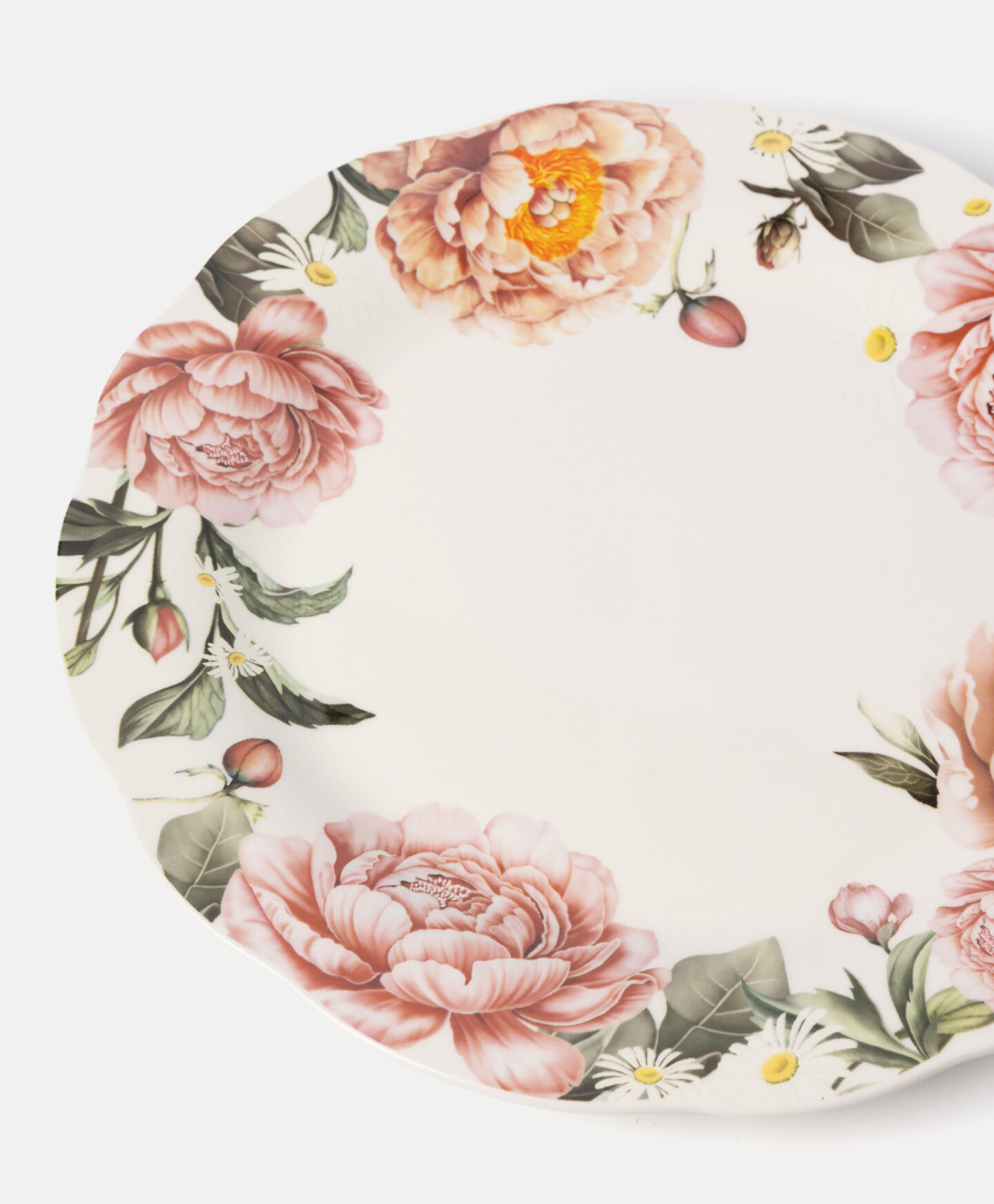 Lillemustriga praetaldrik on pilkupüüdva disainiga. Vastupidav portselani imitatsioon on kreemikasvalge ja kerge läikega. See taldrik on hea valik, kui armastad stiilseid lauanõusid mõistliku hinnaga. Saadaval on ka samast komplektist kausid ja teekann.