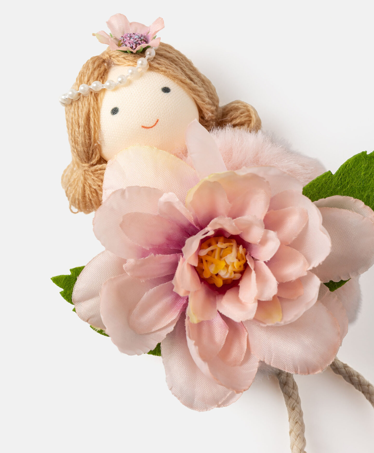 Ripats tüdruku ja roosa lillega on võluv pehmest kangast dekoratsioon, mis toob igasse interjööri kevadist kergust. Ideaalne lauakompositsiooniks, lastetoa kaunistuseks või võtmehoidjaks koti või seljakoti külge. See on õhuline, pehme ja kergesti puhastatav. Saadaval on erinevad disainid.
