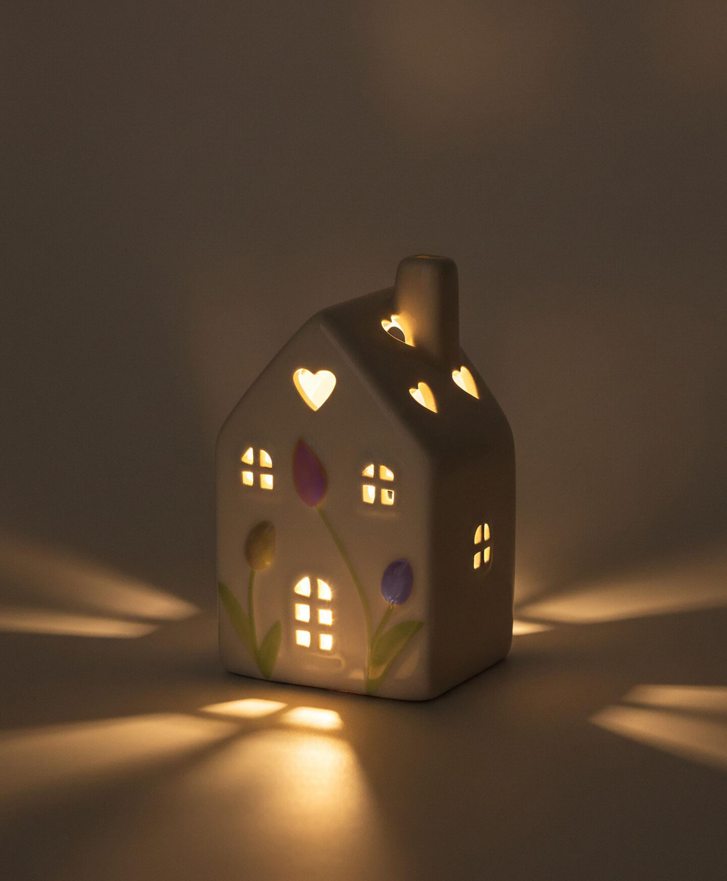 Lillemustriga roheline LED-maja on atmosfääriline dekoratsioon, mis annab õrna ja peent valgust. Selle pastelsed värvid ja kevadmotiiv toovad igasse interjööri värskust ja kergust. Maja näeb suurepärane välja köögiletil, elutoa riiulil või lapse voodi kõrval. Saadaval on erinevad disainid.