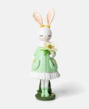 Rohelises kleidis polüresiinist jänes näeb suurepärane välja lastetoas dekoratiivse elemendina, kauni lisandina elutoa riiulile või teie loomakujude kollektsiooni täiendusena. Detailirohke kleidi elegantne disain ja kevadine ilme paistavad silma.