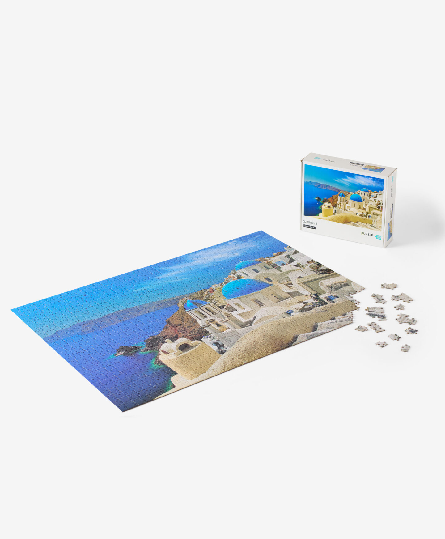 1000-tükiline Santorini pusle viib su kaunile Kreeka saarele. Pusletükkidest moodustub vaade iseloomulike siniste katustega valgetele hoonetele, taustaks sinine meri. Värviküllane ja helge pusle aitab luua puhkusemeeleolu.