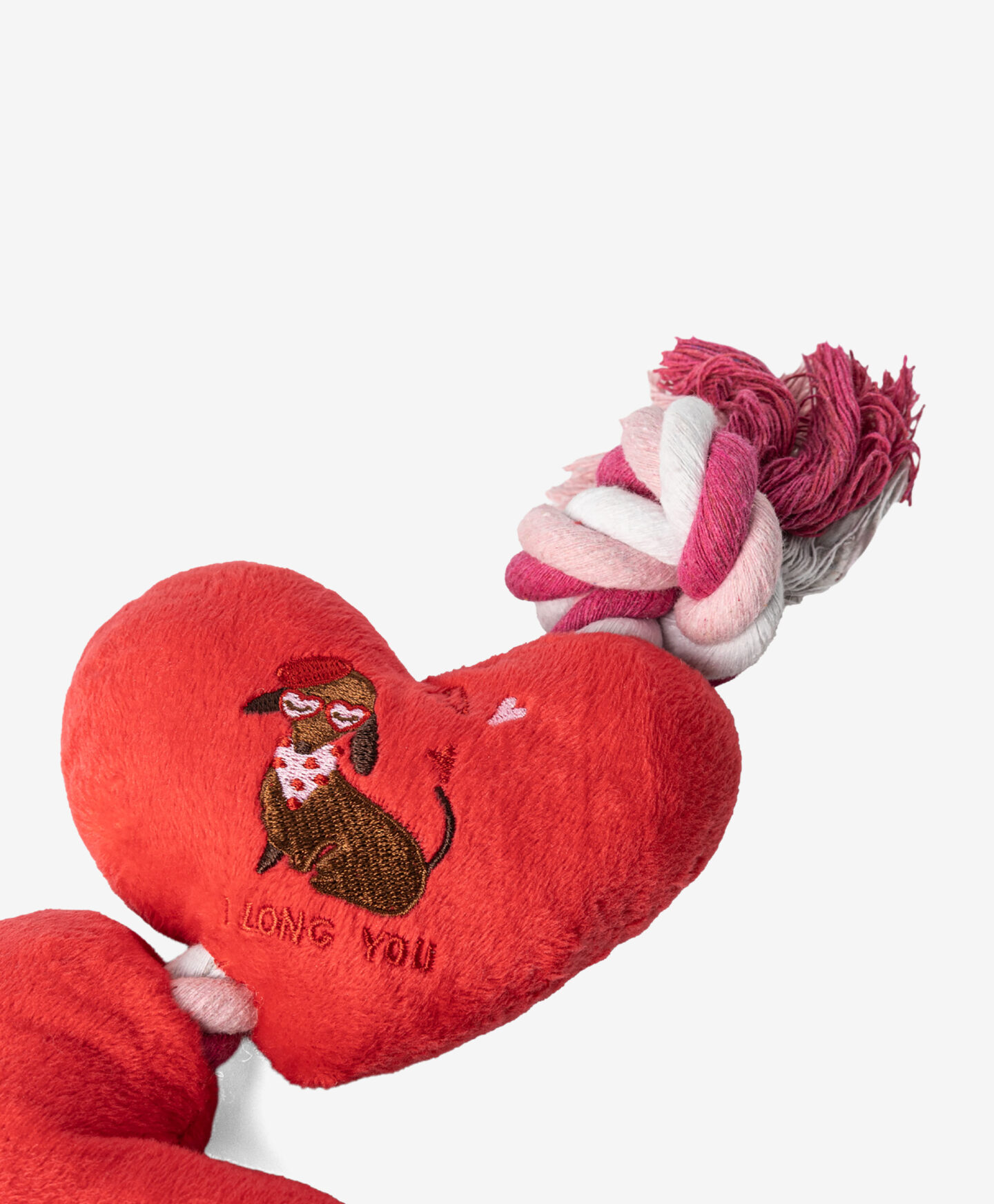 Kahe südamega sikutamismänguasi koertele on loodud aktiivseks mängimiseks. Üks südametest teeb pigistades piiksuvat häält, tekitades veelgi enam hasarti. Vastupidav köis sobib suurepäraselt sikutamiseks ja pehmeid südameid on mõnus närida. Mänguasi pakub koerale tegevust ja sobib üheskoos mängimiseks.