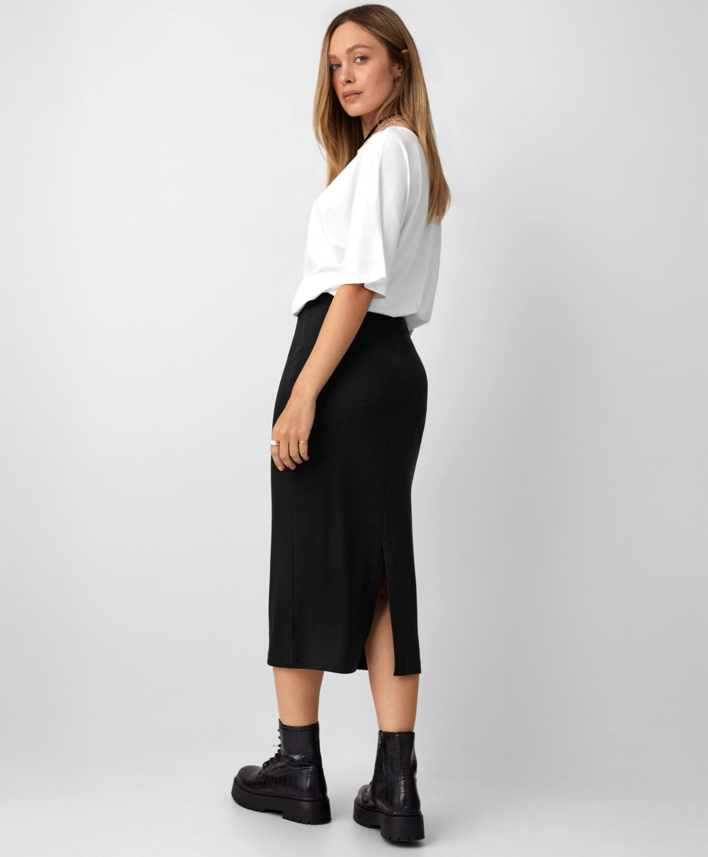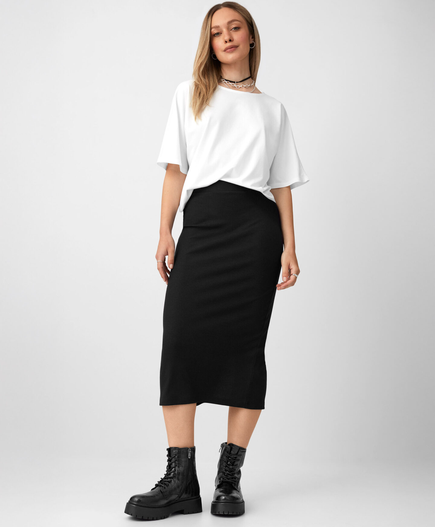 Stiilne ja mugav soonikkoes seelik tõmbab tähelepanu kandja kehakumerustele. Pehmest trikookangast seelik on seljas mugav kogu päeva. Soonikkoes muster näeb trendikas välja ja sobib erinevate komplektide kokkupanemiseks.