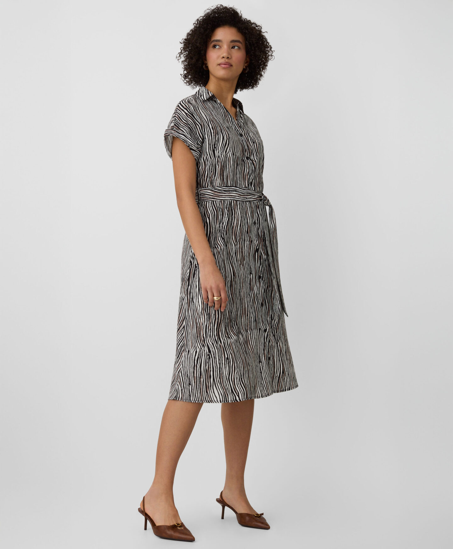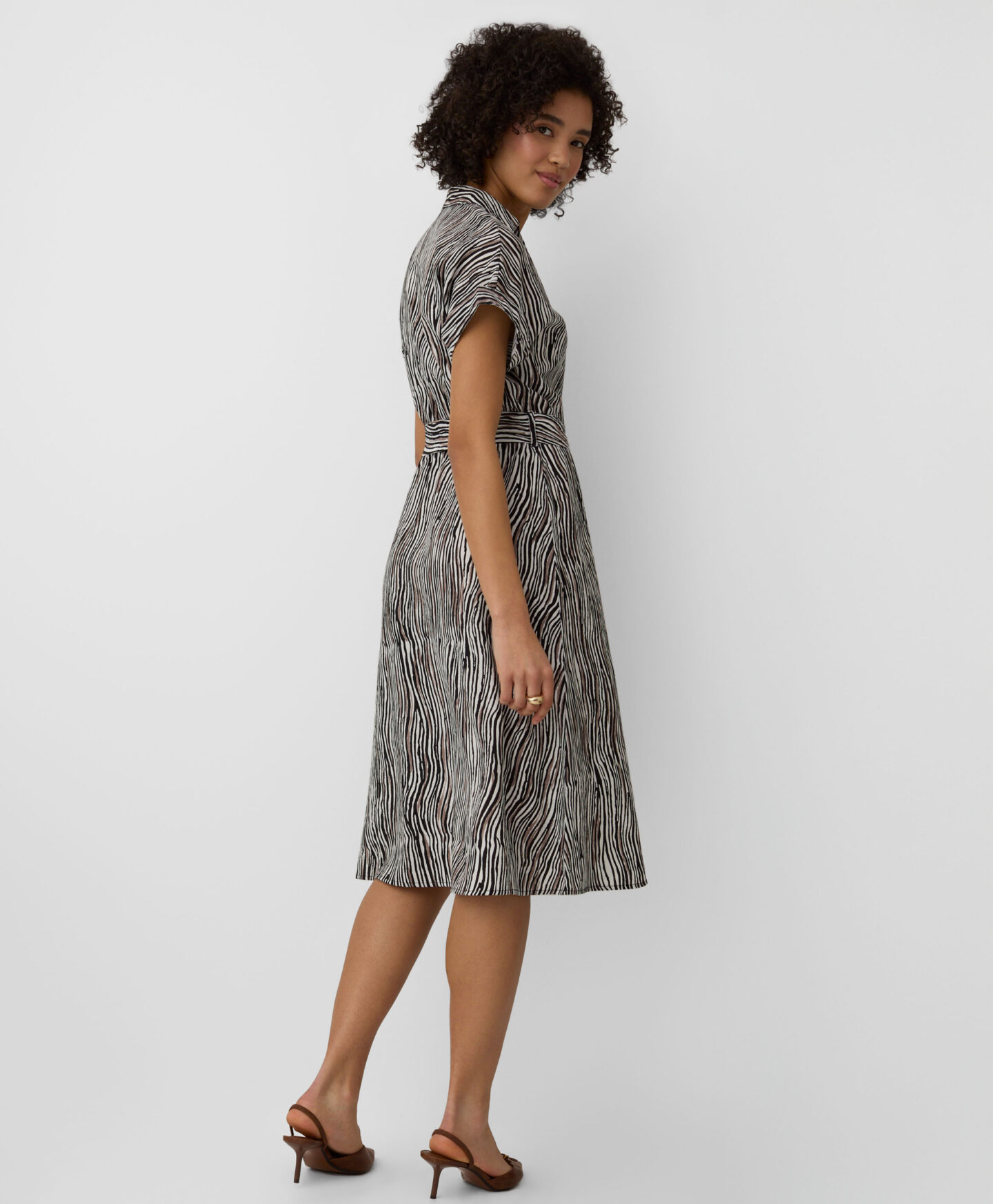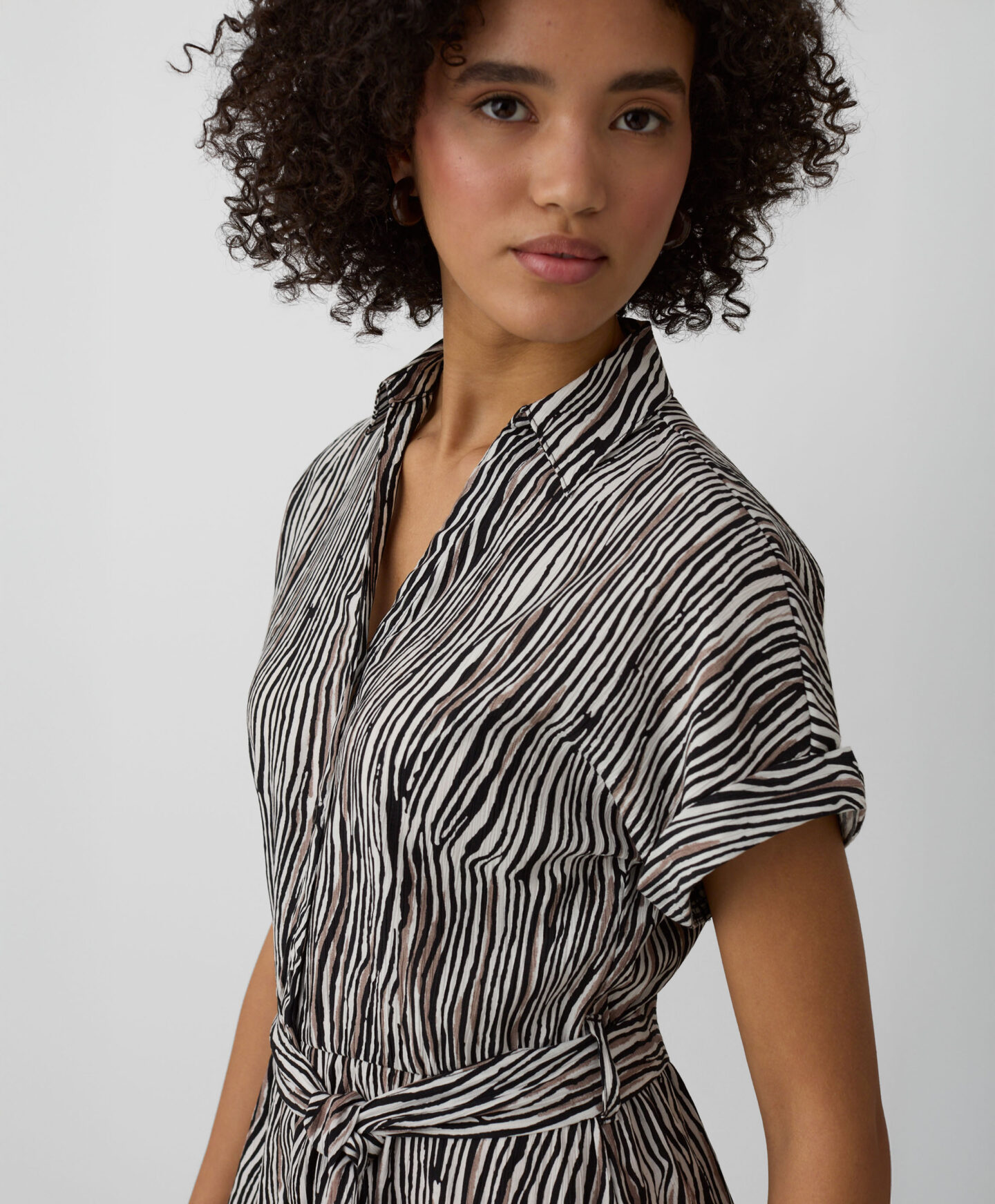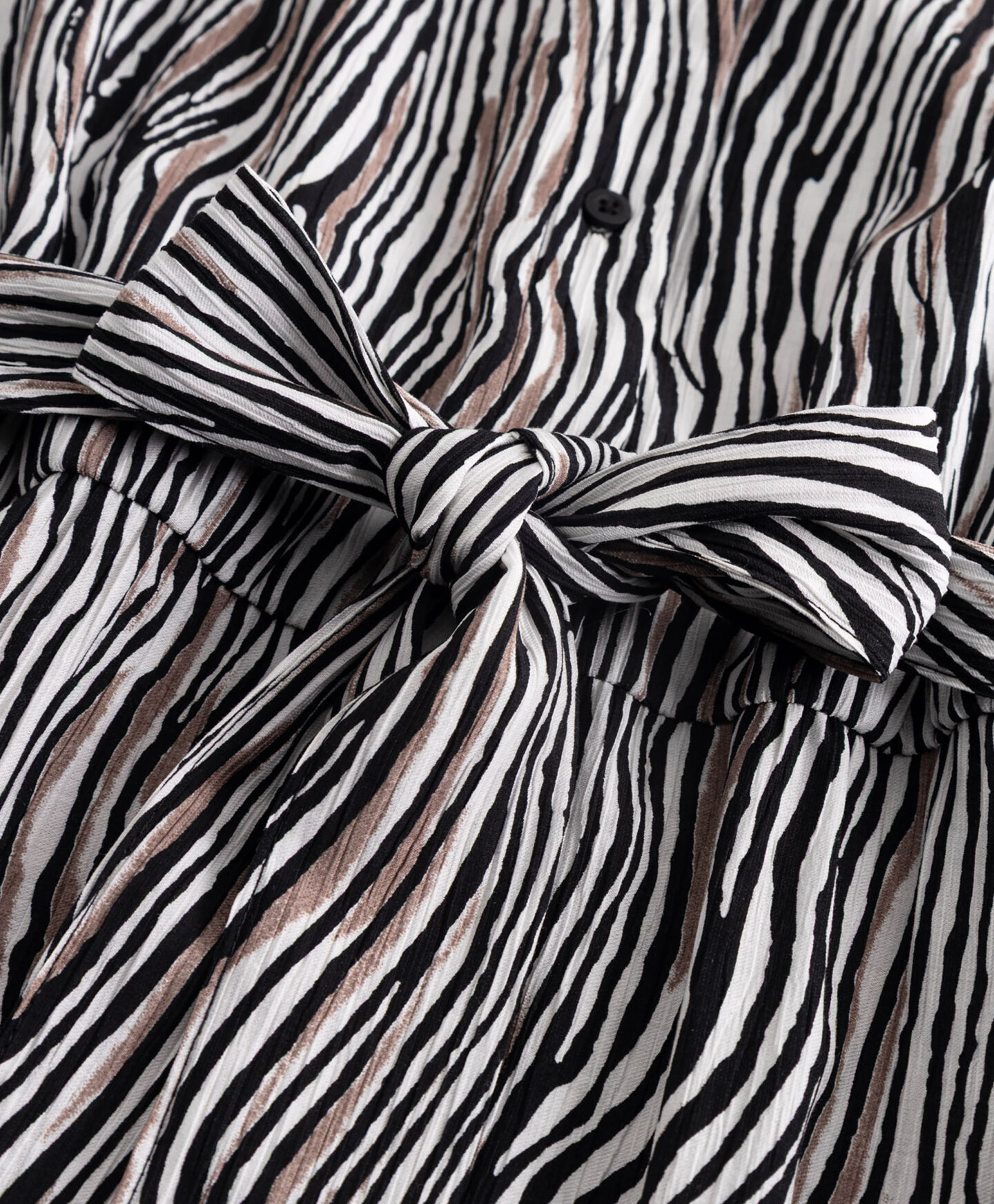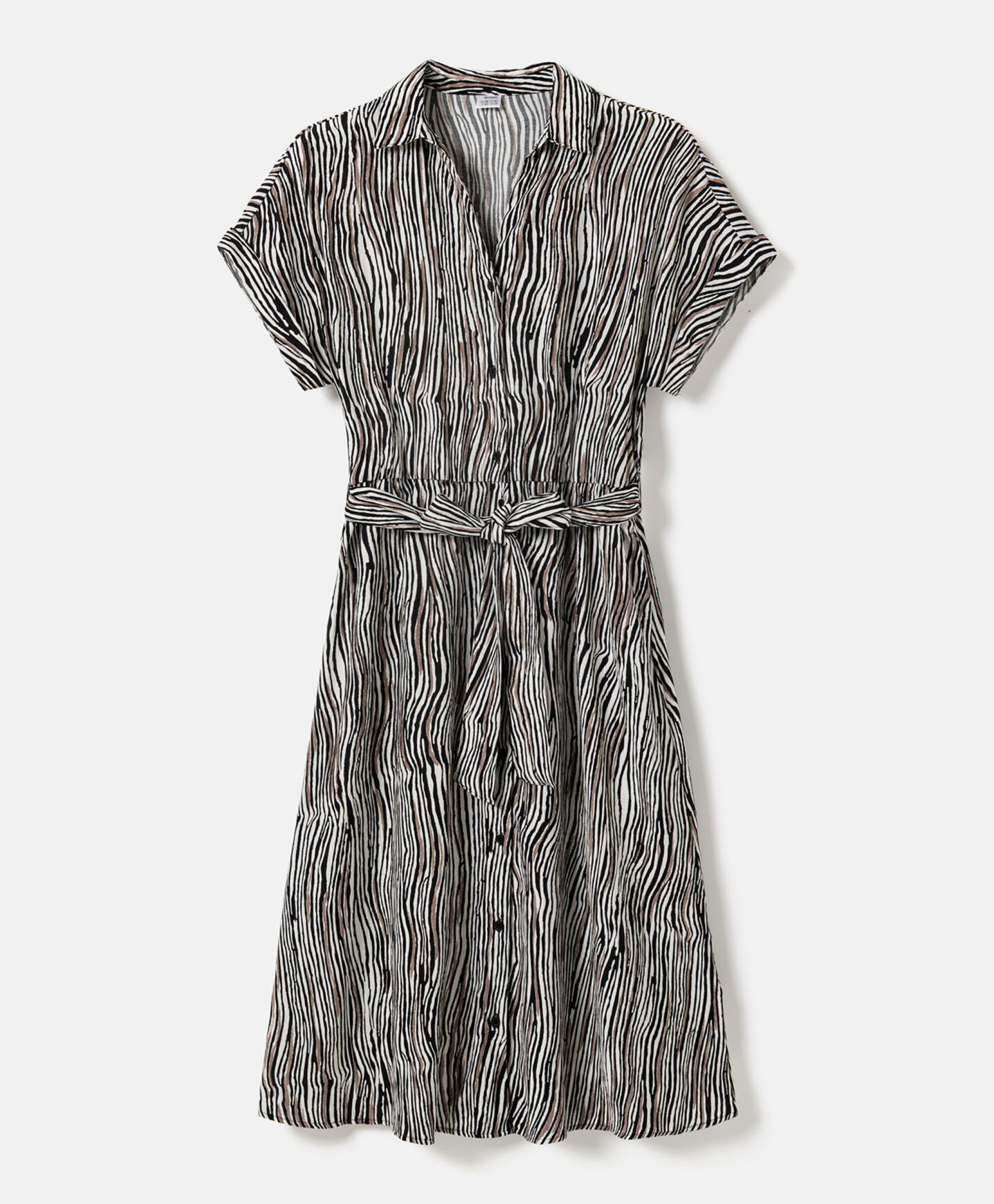 Sukienka damska we wzór, z wysoką zawartością wiskozy, sprawdzi się zarówno w codziennych stylizacjach, jak i przy bardziej eleganckich okazjach. Wiązanie w pasie zapewnia komfortowe dopasowanie i subtelnie podkreśla figurę, nie ograniczając ruchów. Zwierzęcy print przyciąga spojrzenia, wyróżniając Cię z tłumu.