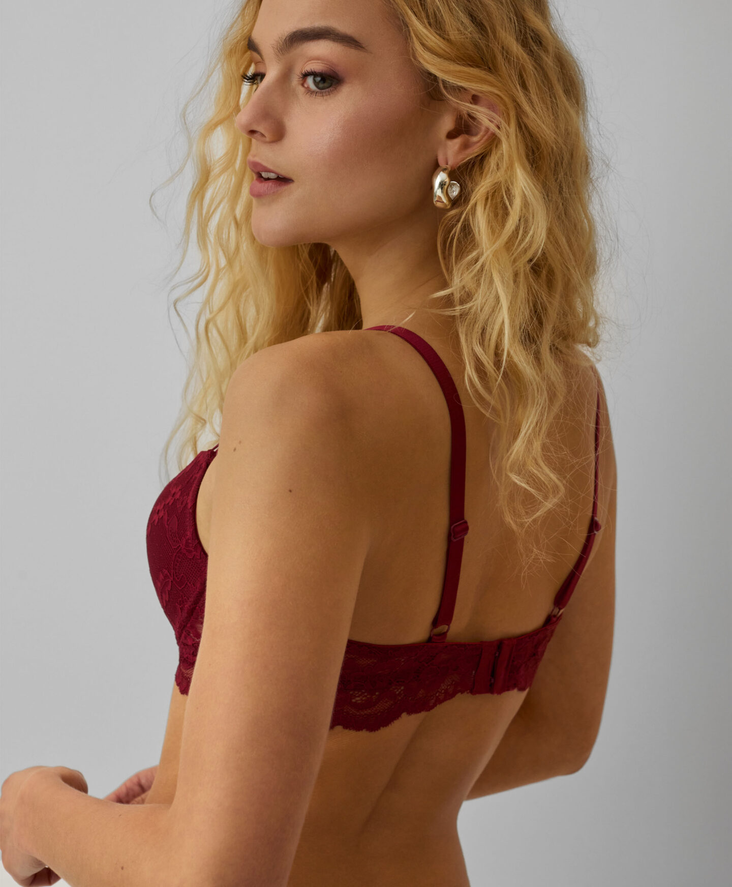 Super push-up rinnahoidja pakub erakordset efekti, muutes iga riietuse silmapaistvaks. Burgundi roosimuster lisab romantilist hõngu, muutes rinnahoidja ideaalseks sensuaalseks kingituseks. Valmistatud pehmest ja meeldivast materjalist, pakkudes kandmismugavust terveks päevaks. Kollektsioonis on saadaval ka sobivad püksikud.