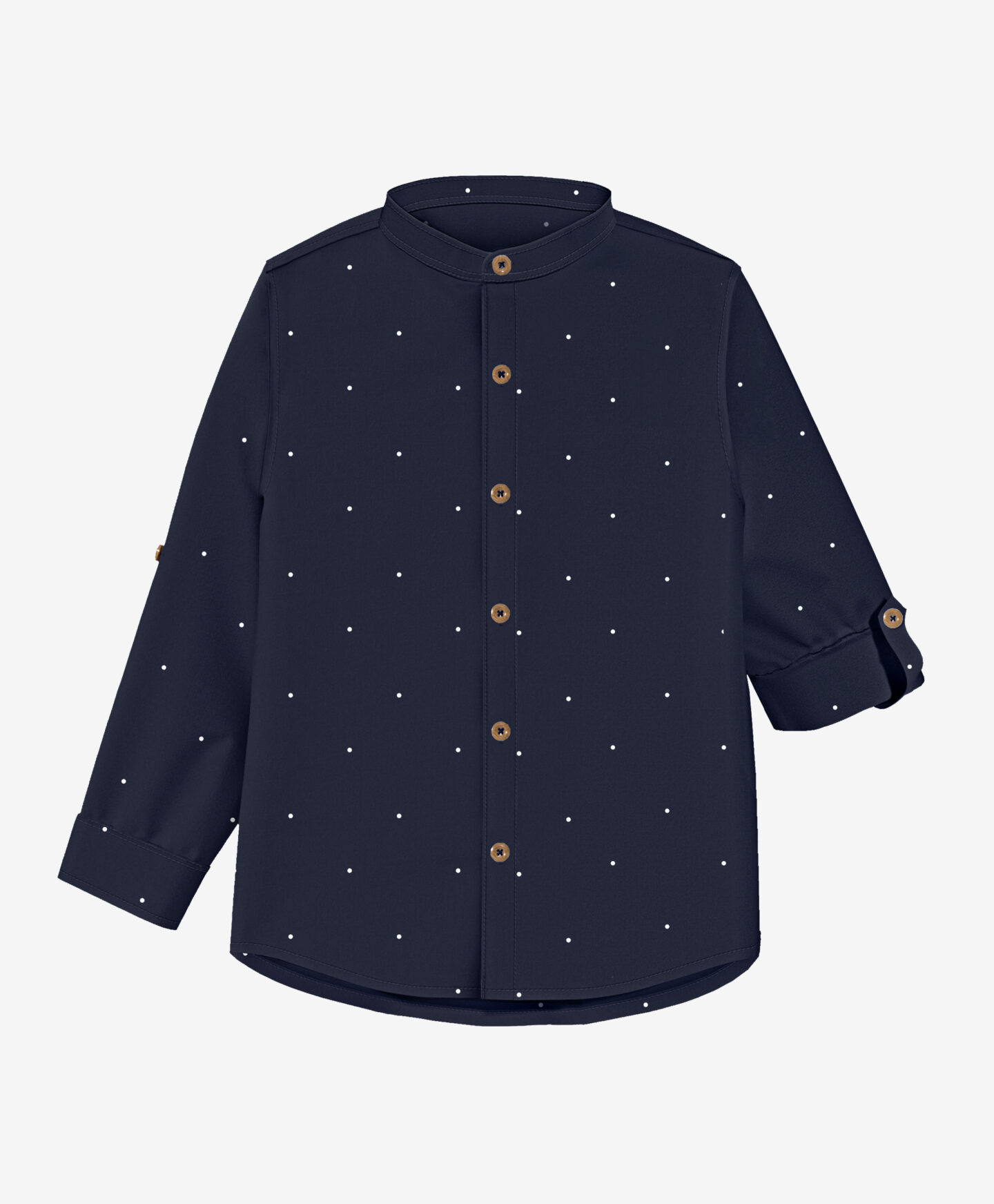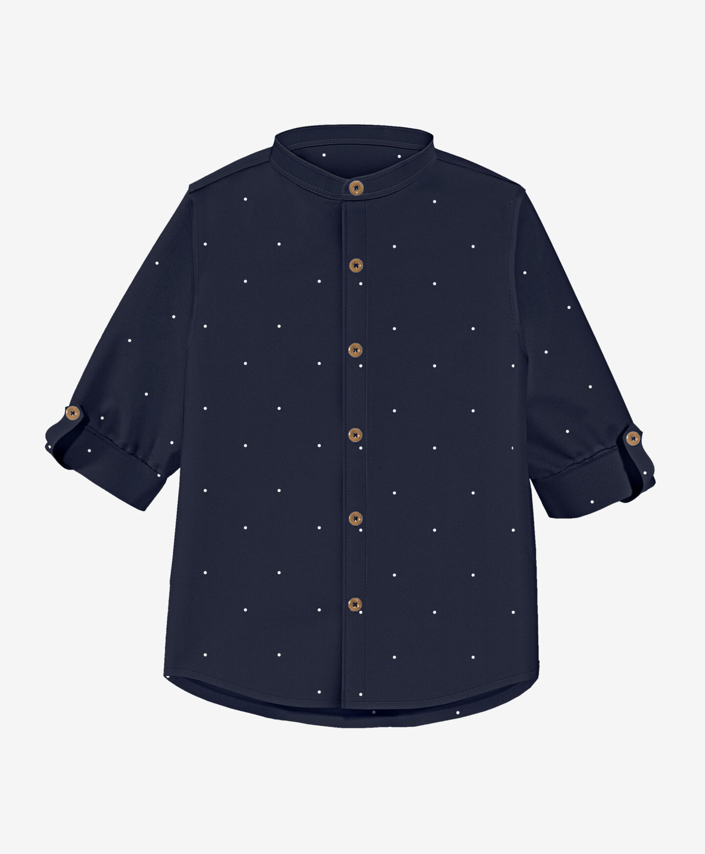 Vali lapsele täpimustriga triiksärk pidulikumateks üritusteks. Väike püstkrae annab triiksärgile eristuva stiili. Pikad varrukad saab üles keerata ja nööbiga kinnitada. Klassikaline tumesinine värvus sobib nii heledate kui ka tumedate pükstega.
