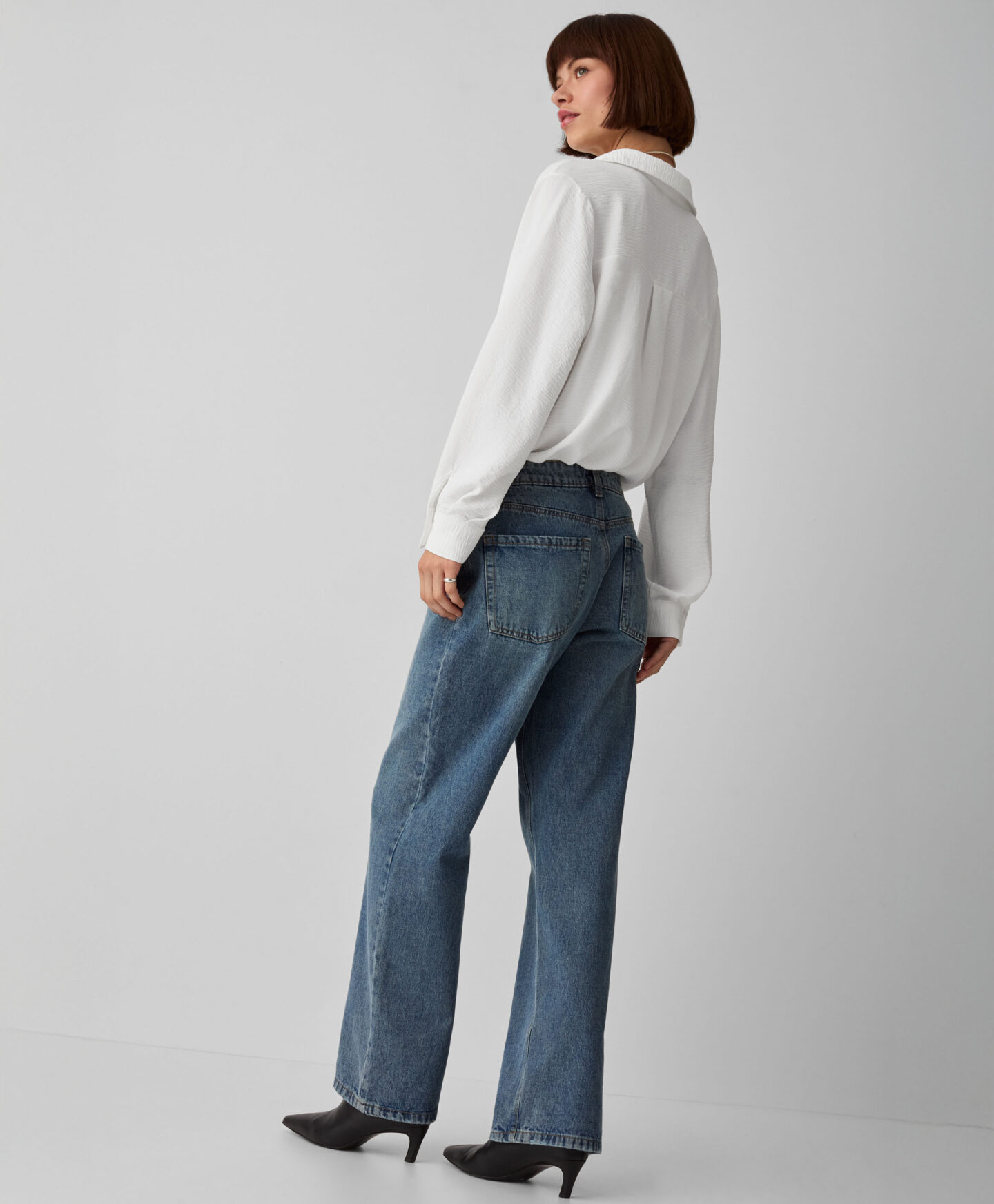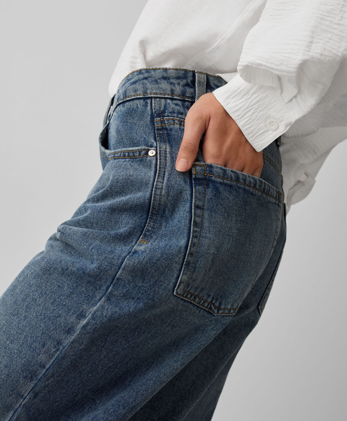 Teksapüksid, 100% puuvill, laiemate säärtega, on selle hooaja tõeline moehitt. Need sobivad nii liibuvate toppide kui ka vabamate komplektide juurde. Klassikaline toon võimaldab neid hõlpsalt sobitada teiste riideesemetega. Mugavad, universaalsed ja kergesti hooldatavad.