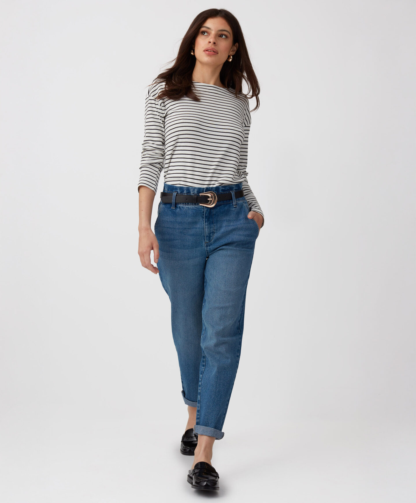Kõrge kroogitud värvliga teksapüksid rõhutavad kandja figuuri. Iseloomulik kõrge vöökoht ja kroogitud värvel muudavad iga riietuse elegantsemaks. Püksid sobivad nii igapäevaseks riietuseks kui ka pidulikumateks olukordadeks, kui tahad hea välja näha ja end samas mugavalt tunda.