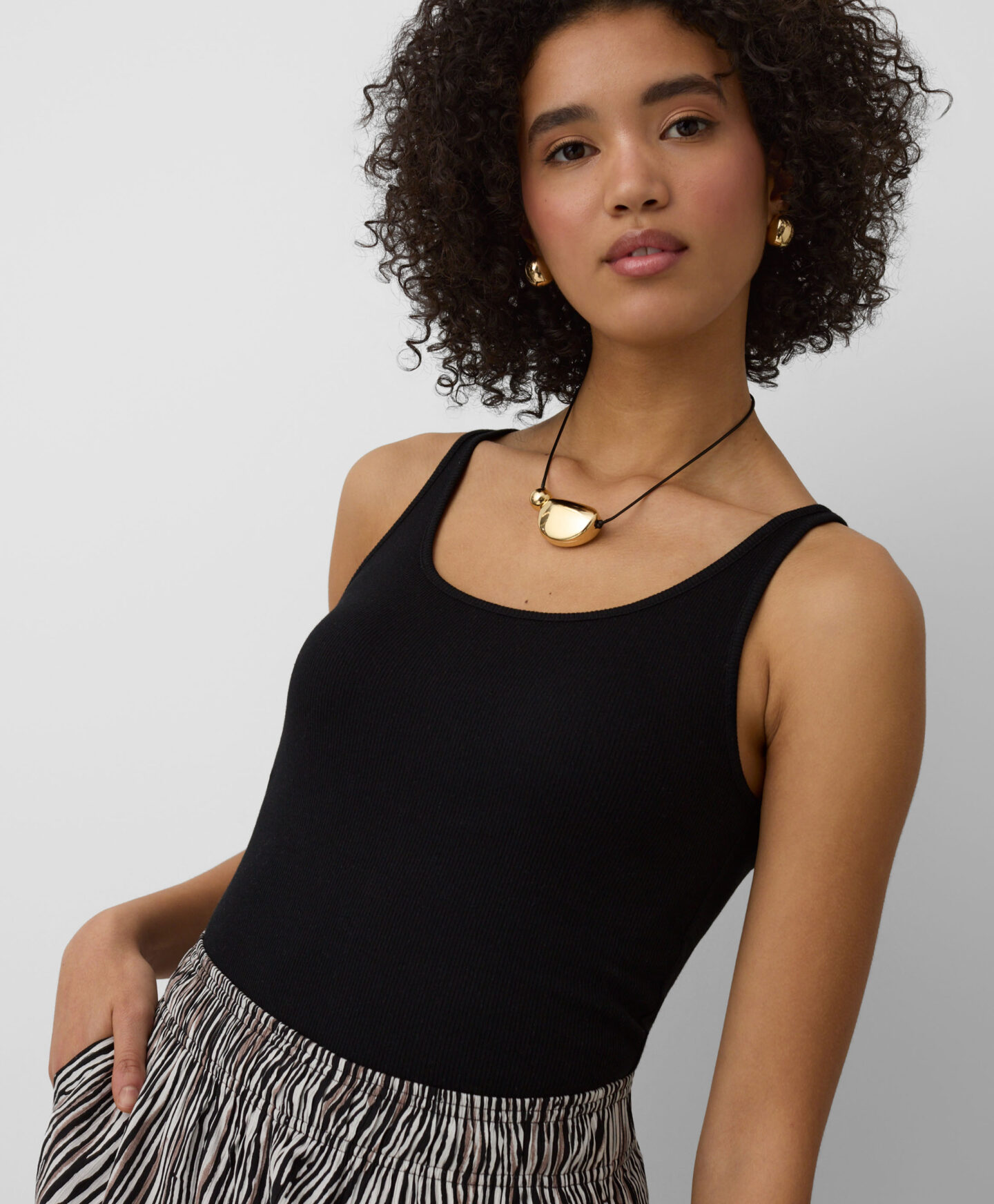 See kaheosaline sooneliste toppide komplekt täiendab ideaalselt garderoobi. Kahe ajatu värvi kombinatsioon muudab selle komplekti garderoobis kohustuslikuks. Veniv triibuline kangas langeb kaunilt, lastes nahal hingata. Topp näeb suurepärane välja koos lemmikteksade, lühikeste pükste või elegantsemate chinodega.