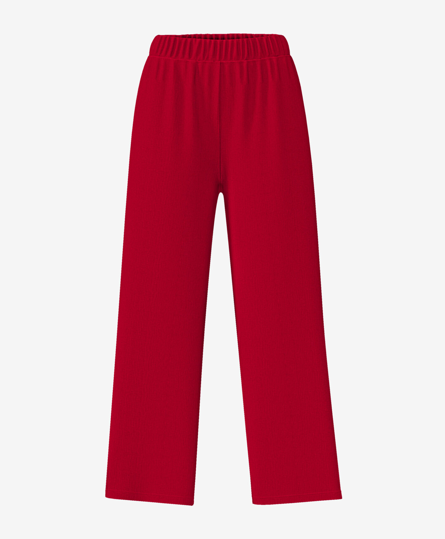 Kergest ja hingavast kangast ühevärviline pidžaama on mugav valik uneajaks. Sügavpunane värvus aitab luua jõulumeeleolu. Komplekti kuuluvad pikkade varrukatega pluus ja laiade säärtega püksid, mis ei piira liikumisvabadust.