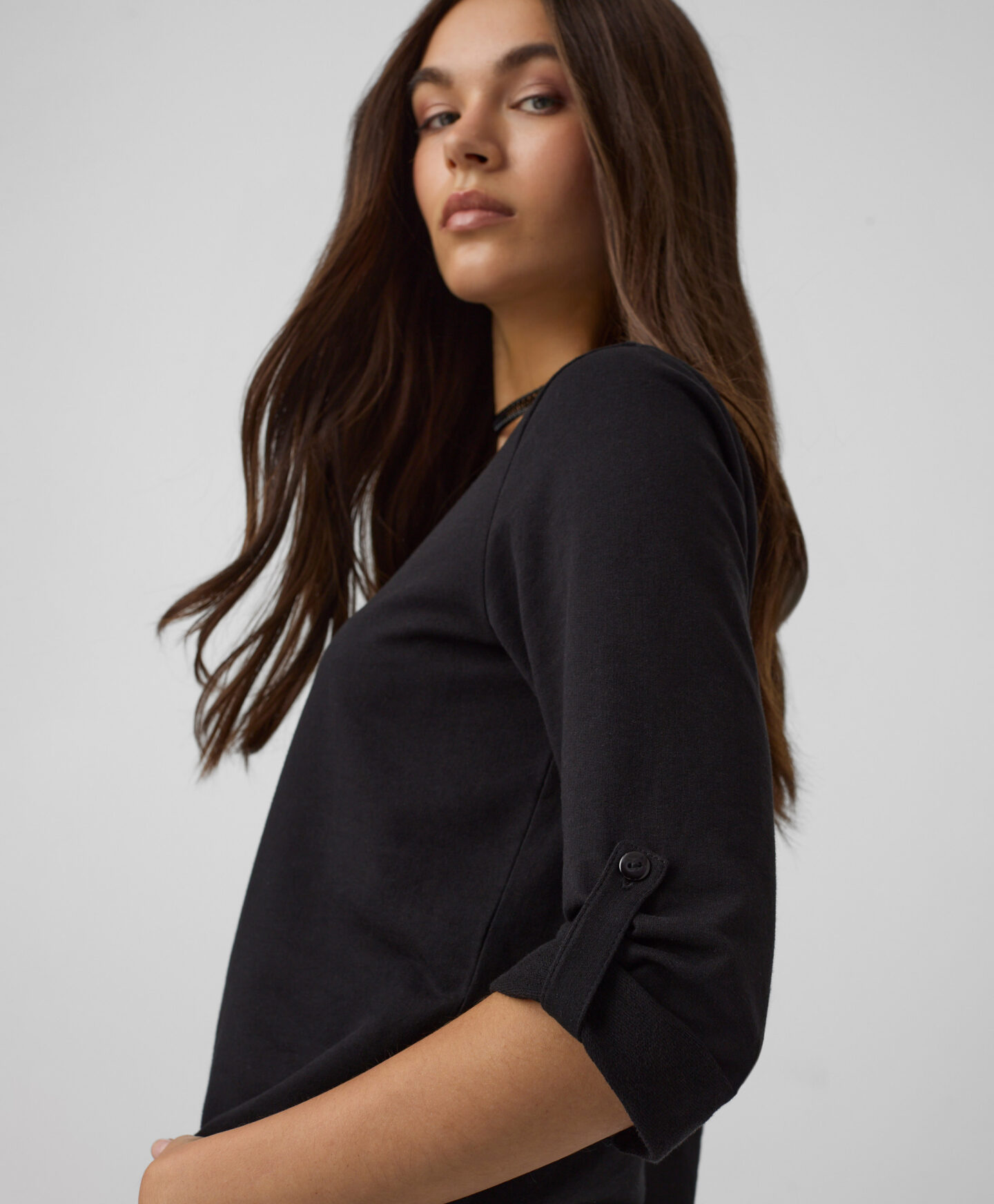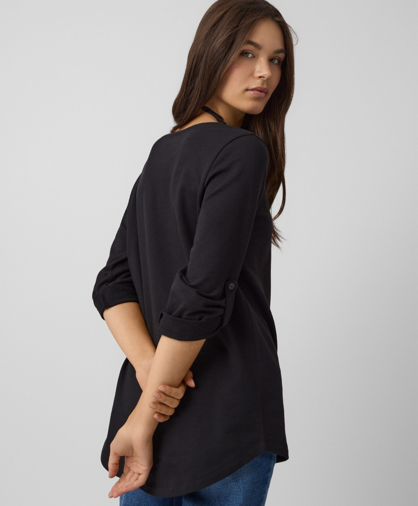 Ümara allserva ja üles keeratud varrukatega T-särk sobib elegantse ja mugava riietuse austajatele. Selle eriline lõige püüab pilku ja rõhutab kandja omapära. Suure puuvillasisaldusega T-särk tundub keha vastas mõnus ja laseb nahal hingata.