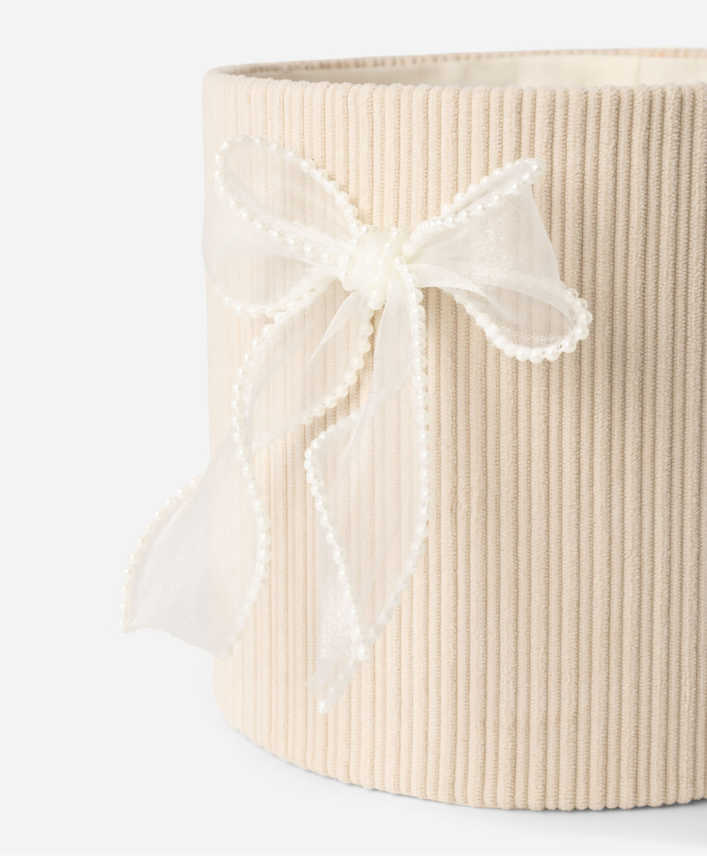 Väike ümmargune lipsuga karp on igale ruumile peen lisa. See sobib ideaalselt väikeste esemete, näiteks ehete, võtmete või muude nipsasjakeste hoidmiseks või dekoratsiooniks. Kaane puudumine võimaldab sisule kiiret juurdepääsu. Selle stiilne disain tähendab, et saate seda asetada nii magamistoa öökapile kui ka kontoris lauale.