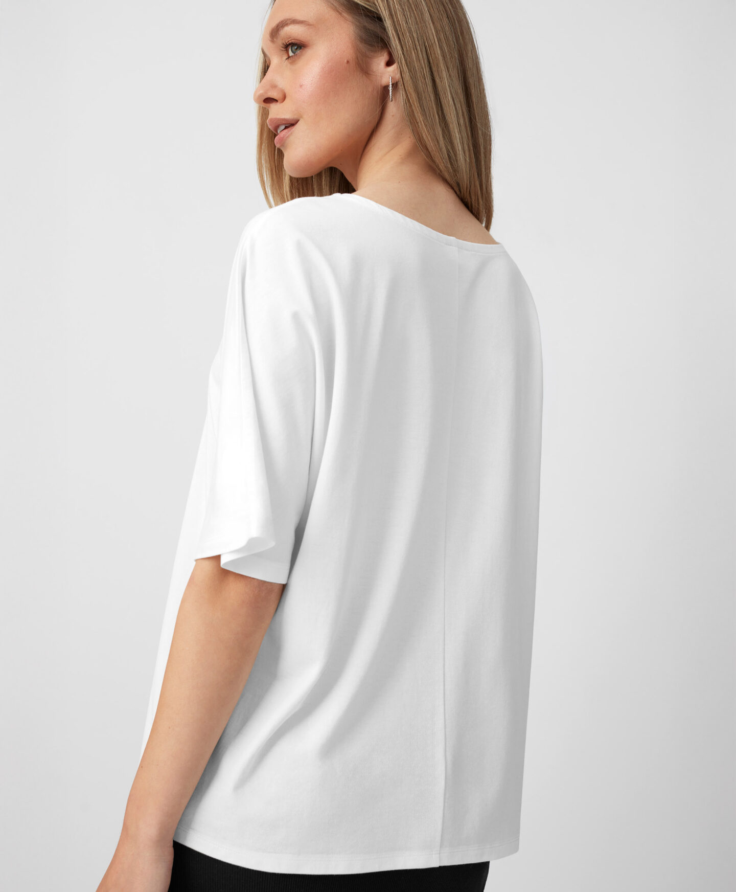 Valge kroogitud T-särk on klassikaline ja stiilne valik. Elegantse lõike ja kroogitud küljega T-särk rõhutab kandja figuuri. Seda võib kanda päeval või õhtul välja minnes. Saadaval 2 värvis.