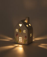 Lillemustriga valge LED-maja on atmosfääriline dekoratsioon, mis annab õrna ja peent valgust. Selle pastelsed värvid ja kevadmotiiv toovad igasse interjööri värskust ja kergust. Maja näeb suurepärane välja köögiletil, elutoa riiulil või lapse voodi kõrval. Saadaval on erinevad disainid.