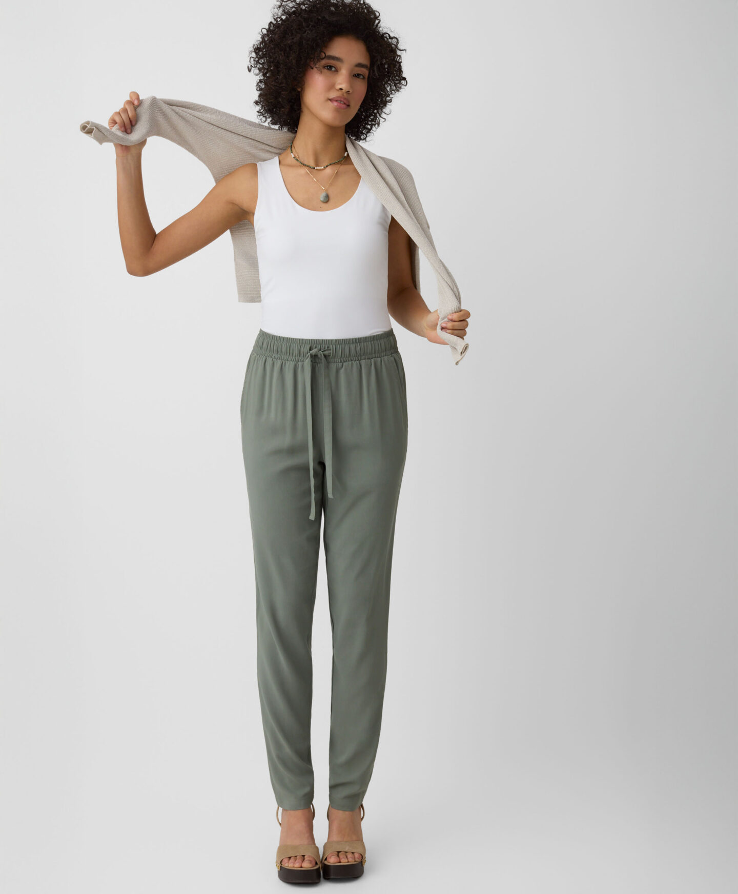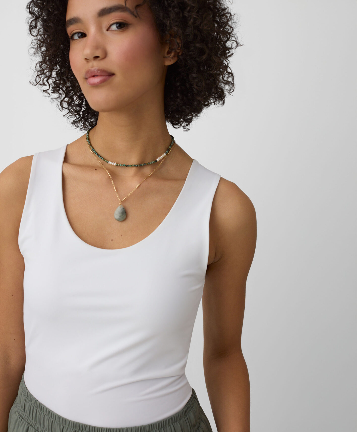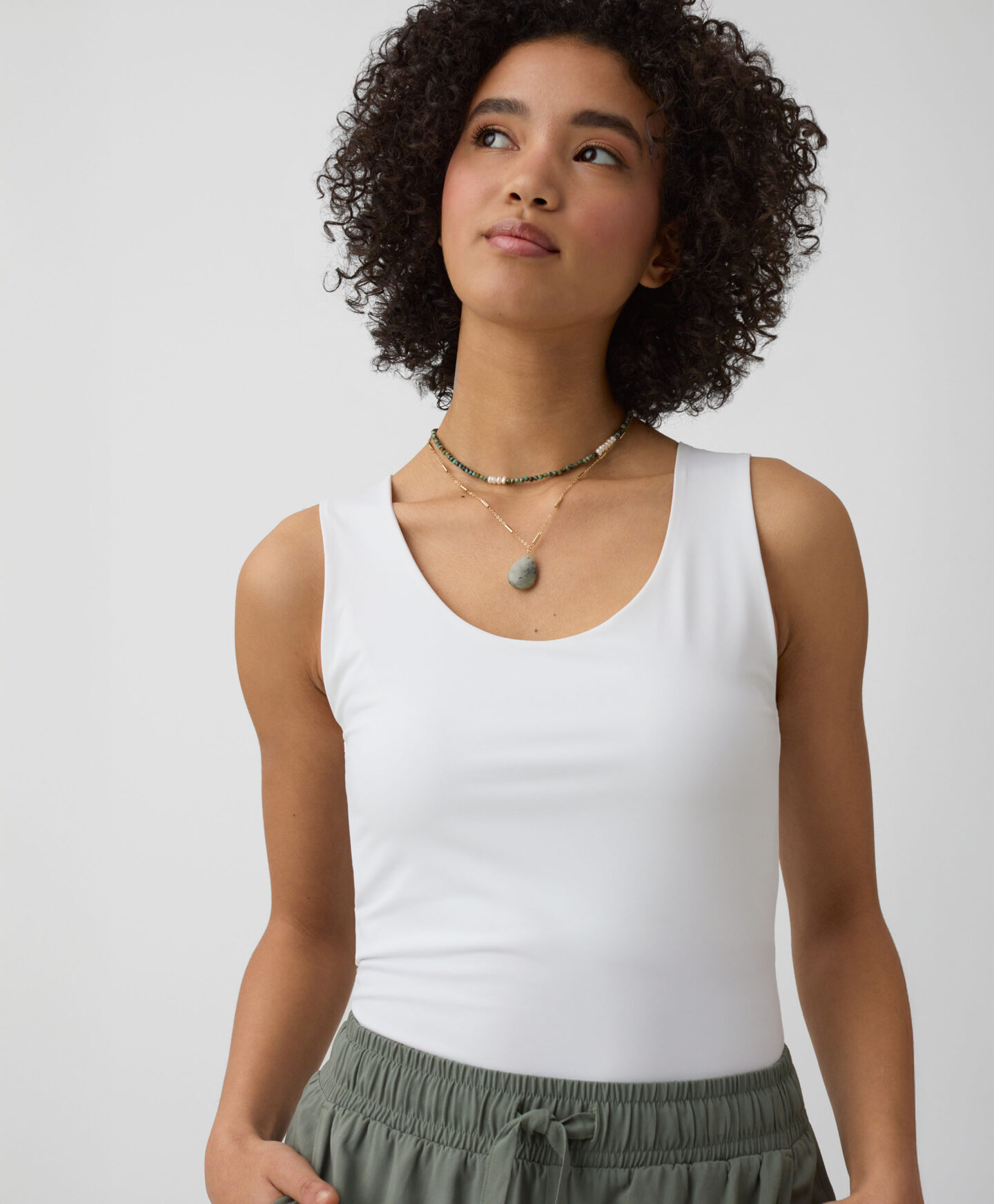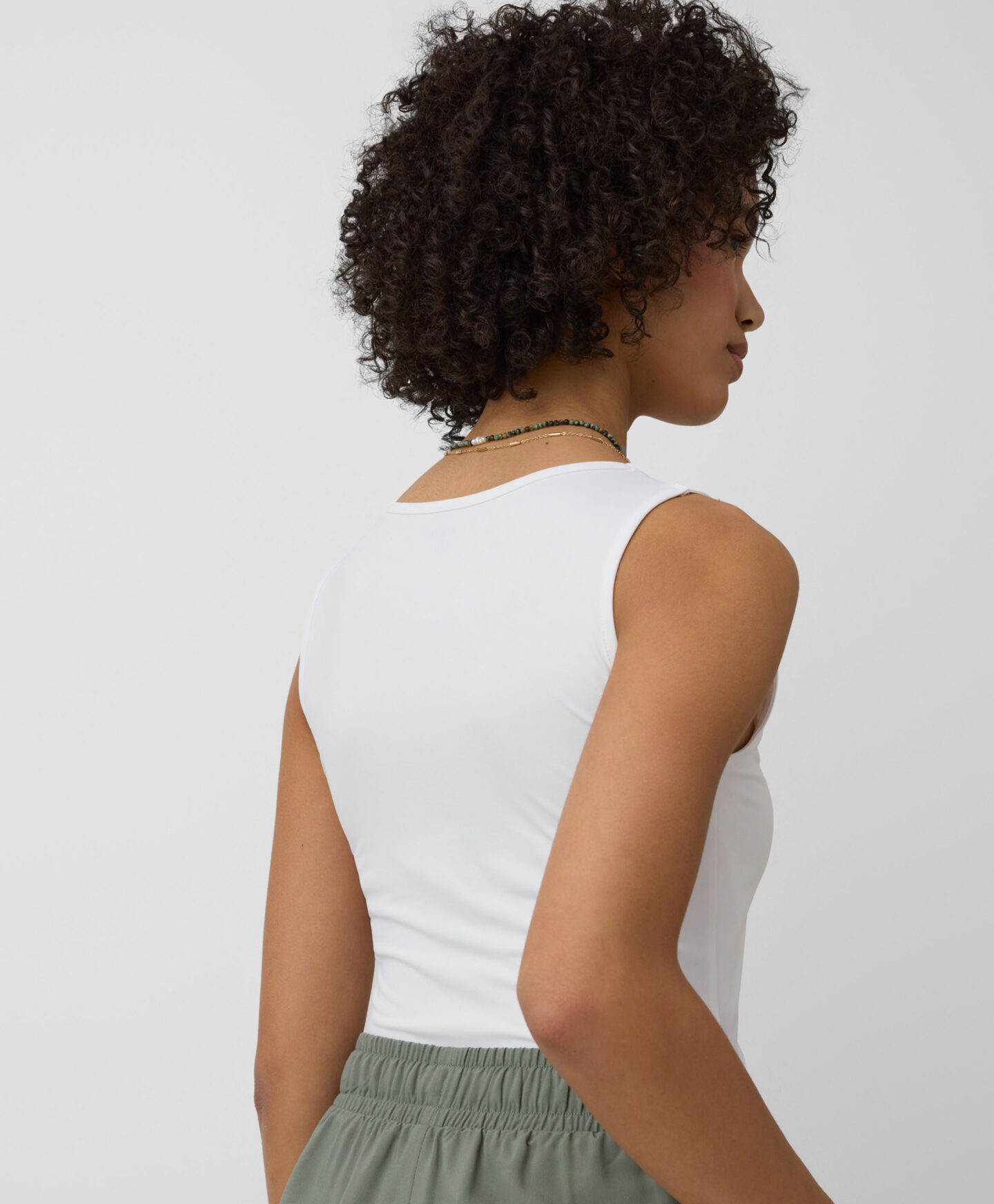 See valge topp on uskumatult mitmekülgne. Sobib hästi teksade, chinode, lühikeste pükste ja sportpükstega. Saab kanda nii jaki kui ka dressipluusi all. Pehme tekstuur ja ühtlane värv muudavad selle topi iga eduka riietuse aluseks. Saadaval kolmes värvitoonis.
