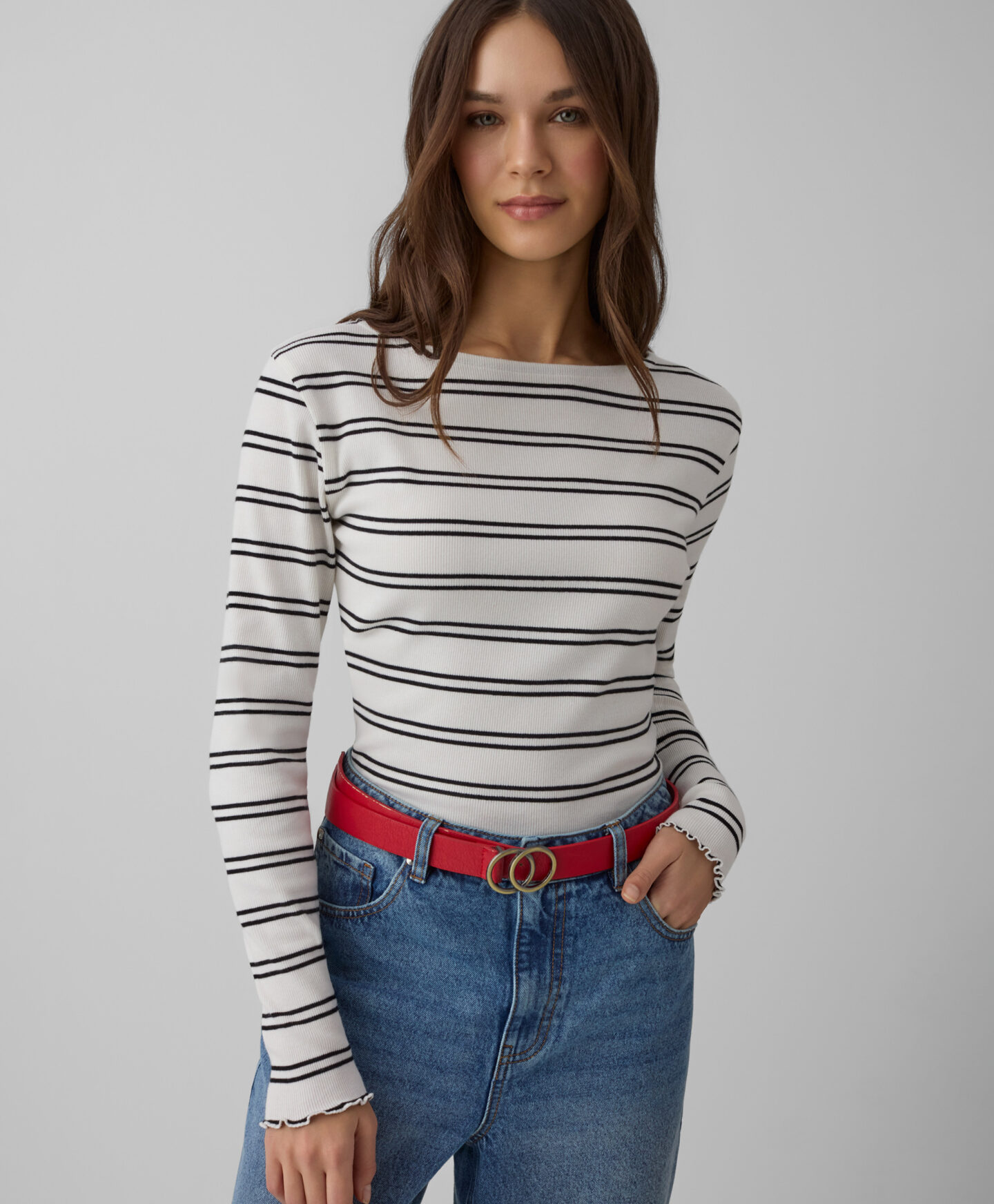 Suure puuvillasisaldusega valge triibulise T-särgi koostises on ka pisut elastaani, nii et see hoiab kenasti kehasse. Pilkupüüdev viimistlus mõjub stiilselt igas kombinatsioonis. Vali juurde näiteks teksapüksid või elegantsemad püksid. Saadaval 2 värvis.
