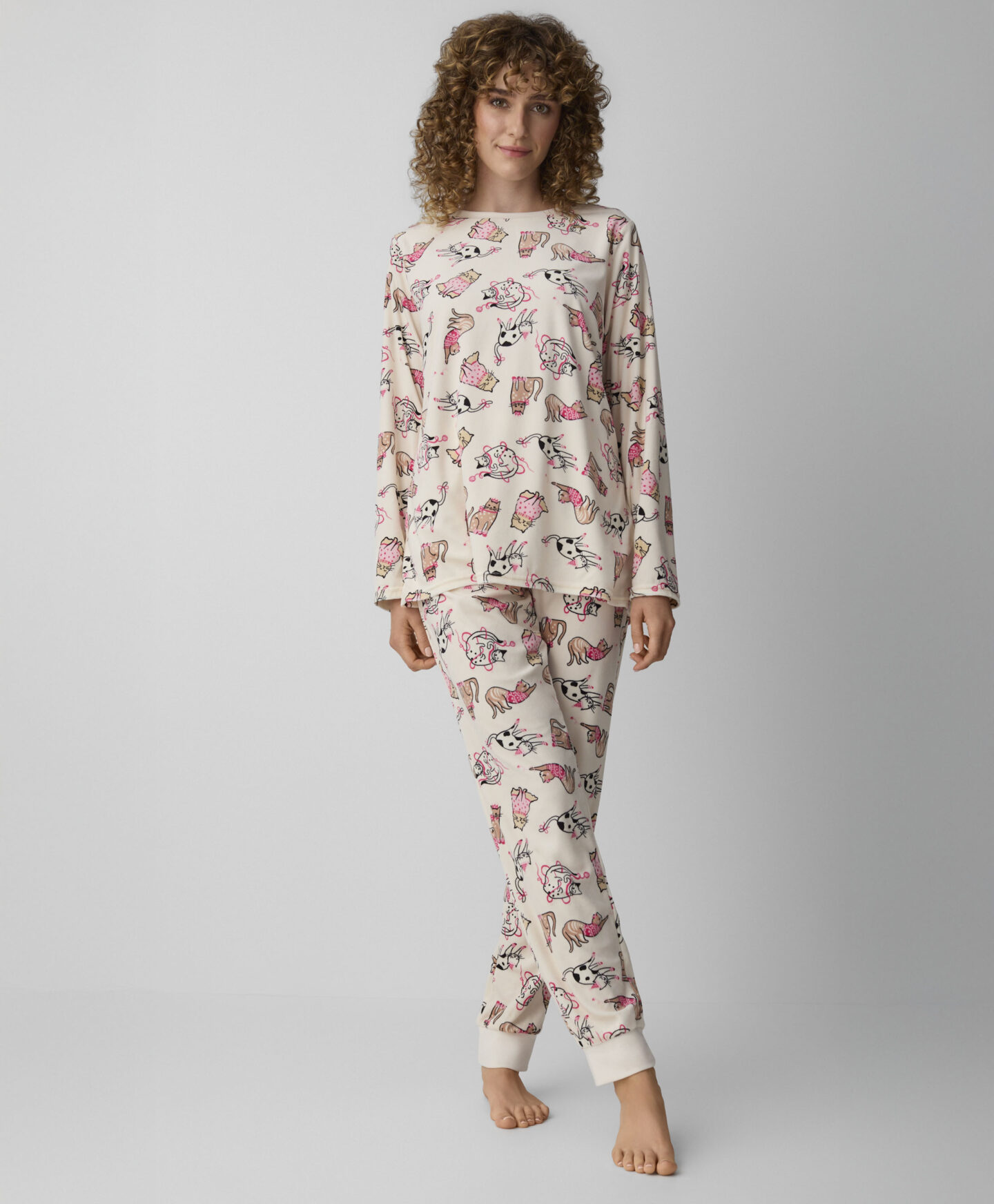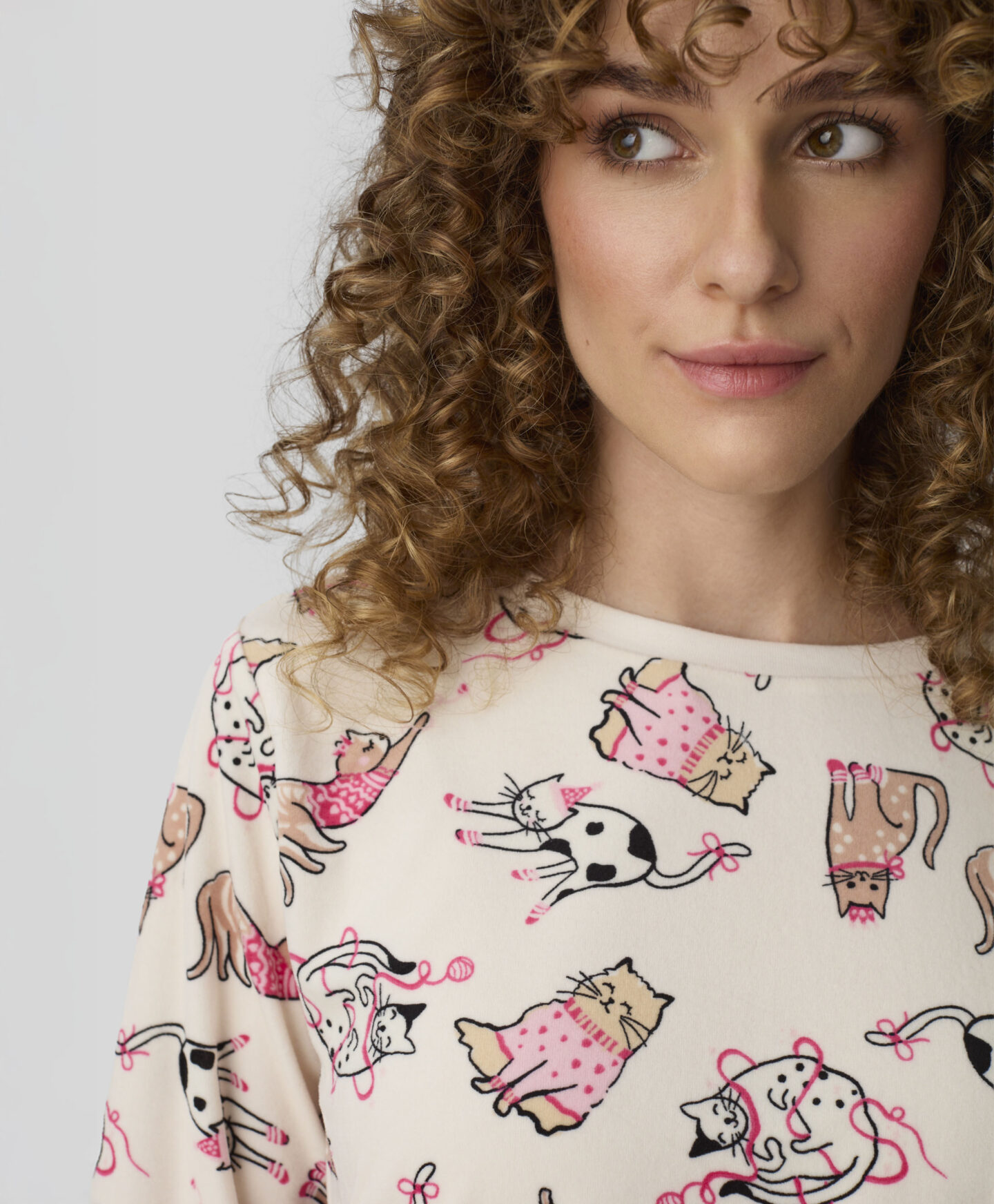 Kassidega veluurpidžaama on ideaalne lahendus jahedateks õhtuteks. Mõnusalt pehmest veluurkangast soe pidžaama tagab mugava une ega piira liikumist. Vahvad kiisud tekitavad tahtmise pidžaama selga tõmmata juba enne uneaega.