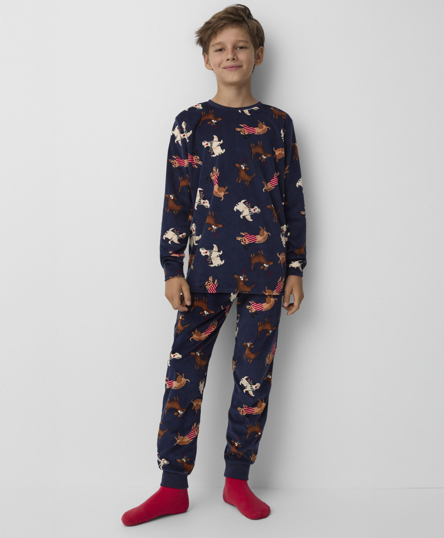 Koertega veluurpidžaamas on mugav magada ja see ei piira liikumist. Mõnusalt pehmest veluurkangast pidžaama on just see, mida jahedateks öödeks vaja. Nii on lapsel soe ja mugav. Vahvad kutsad tekitavad tahtmise pidžaama selga tõmmata juba ammu enne uneaega.