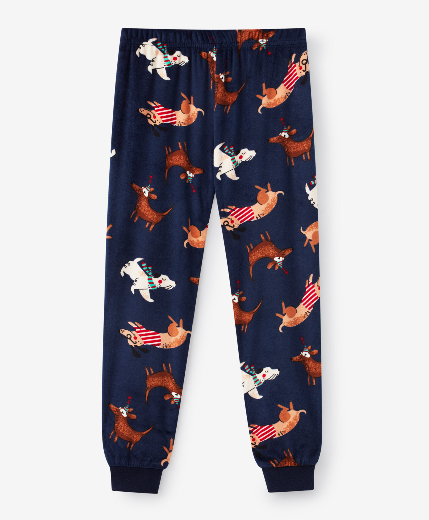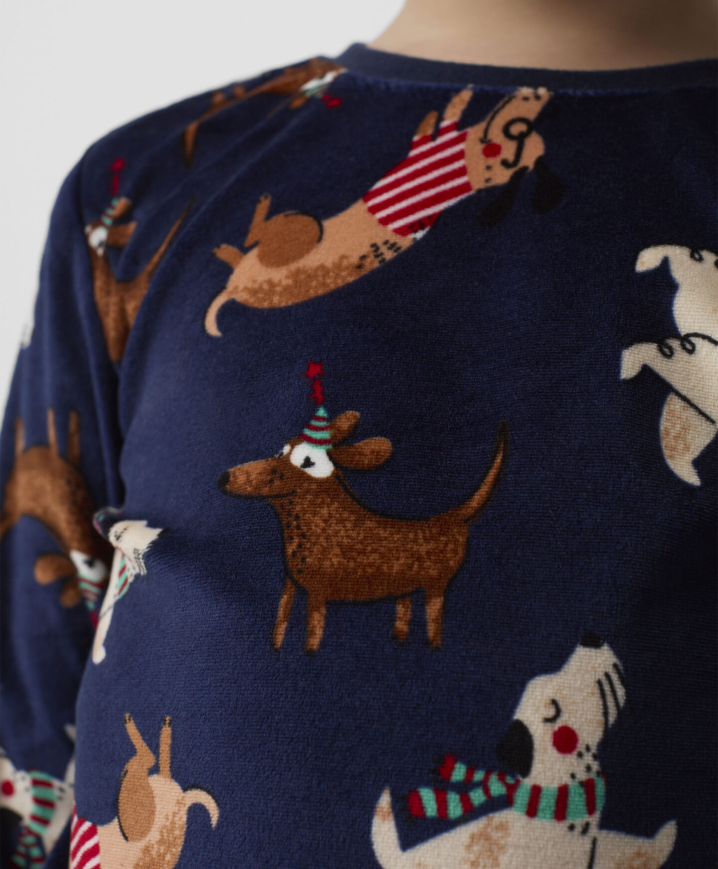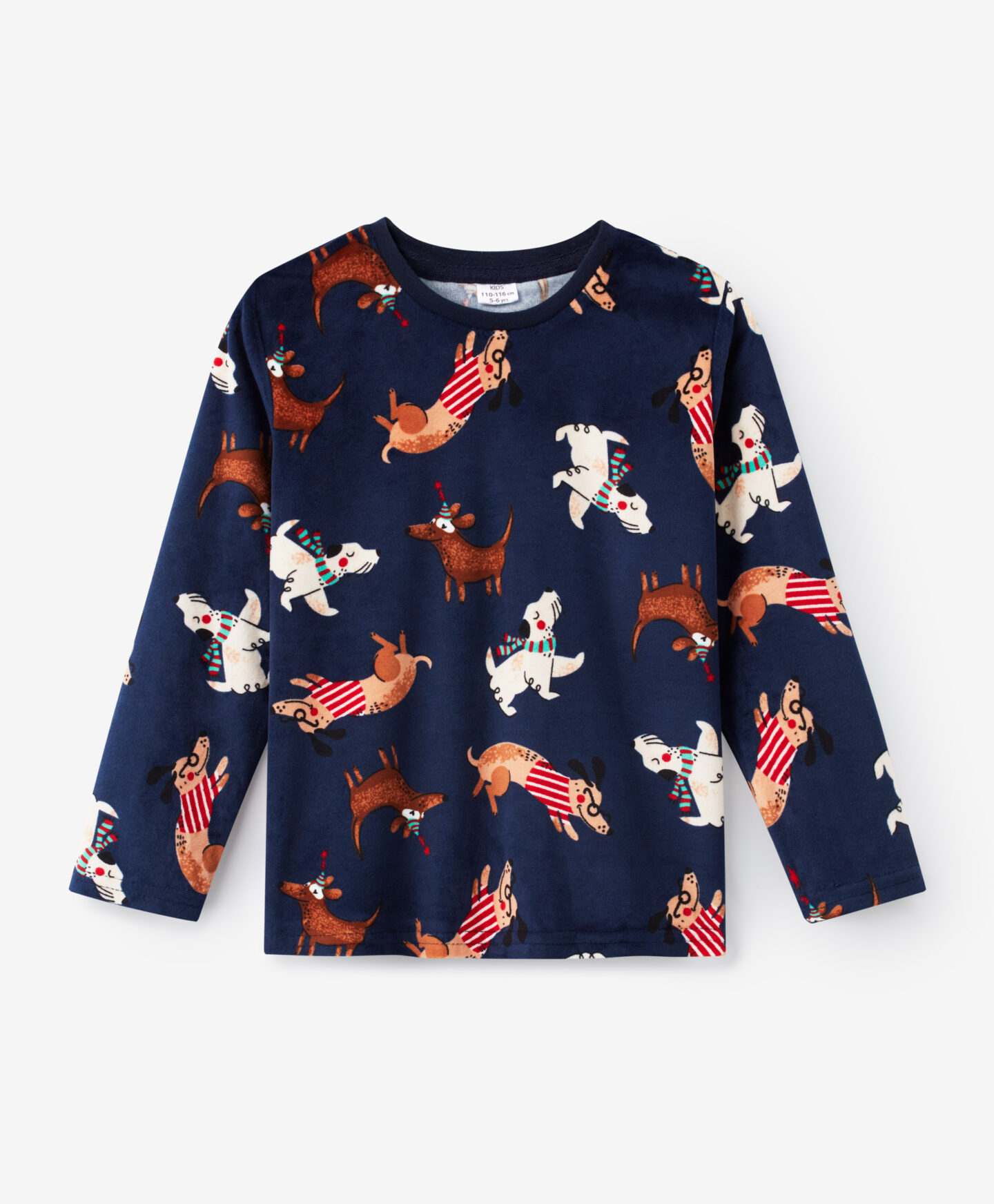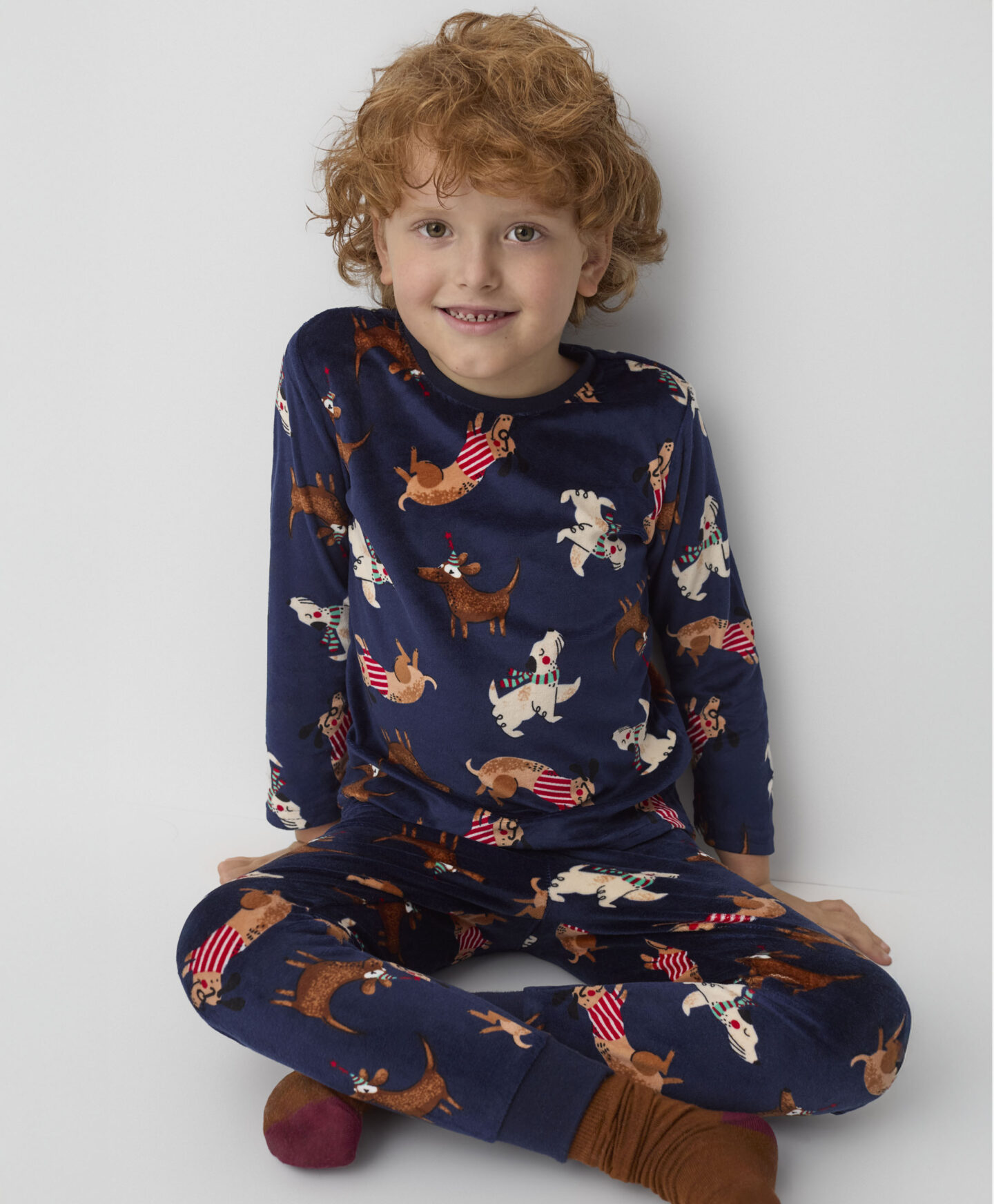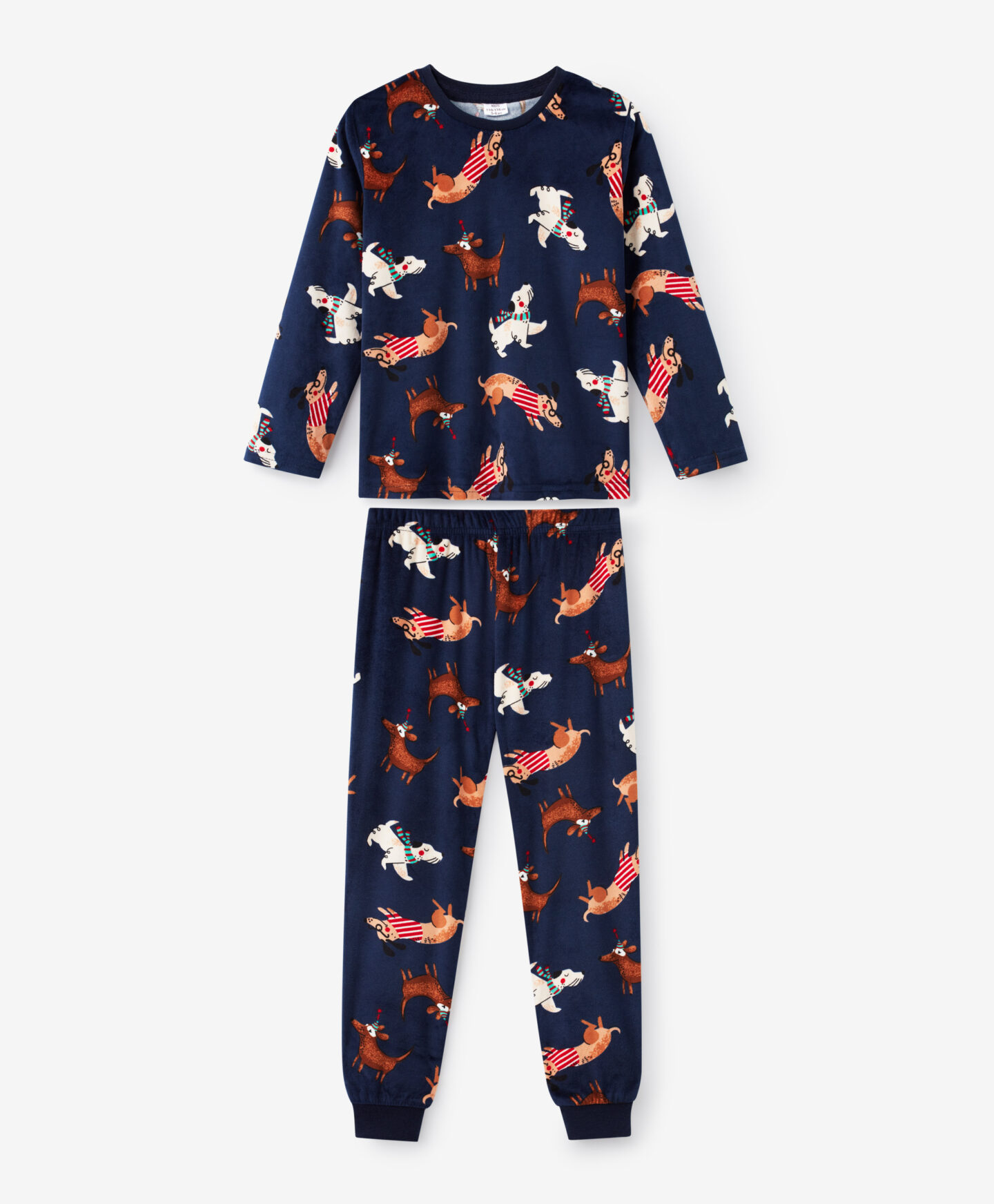 Koertega veluurpidžaama teeb tuju heaks kõigil väikestel koerasõpradel. Mõnusalt pehmest veluurkangast pidžaama tagab mugava une ega piira liikumist. Vahvad kutsad tekitavad tahtmise pidžaama selga tõmmata juba ammu enne uneaega. Soe ja hubane pidžaama sobib hästi jahedamateks õhtuteks.
