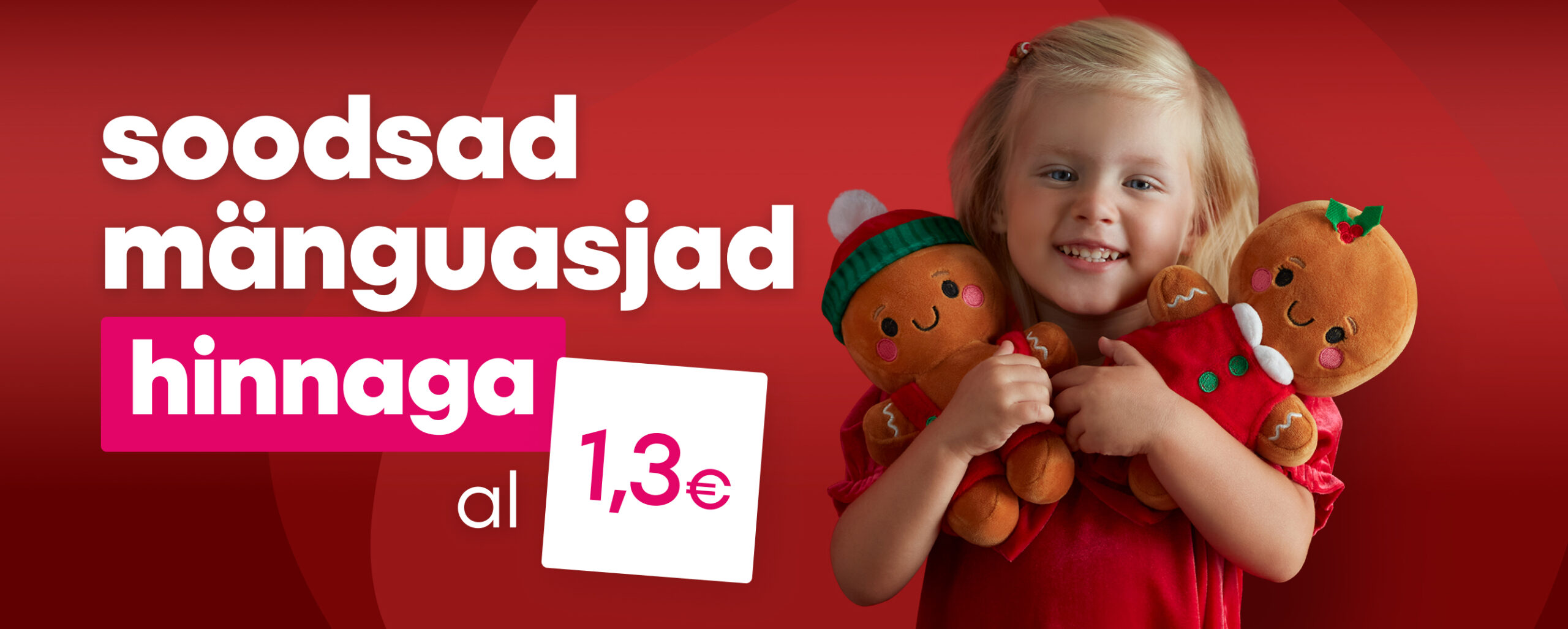 Avasta kingiideed, mis panevad jõuluõhtul laste südamed kiiremini põksuma. Valikus on pehmed mänguasjad, interaktiivsed lemmikloomad, kaugjuhitavad sõidukid ja mänguasjad laste lemmiktegelastega. Hea hinnaga tooted leiad lähimast PEPCOST juba sel neljapäeval.